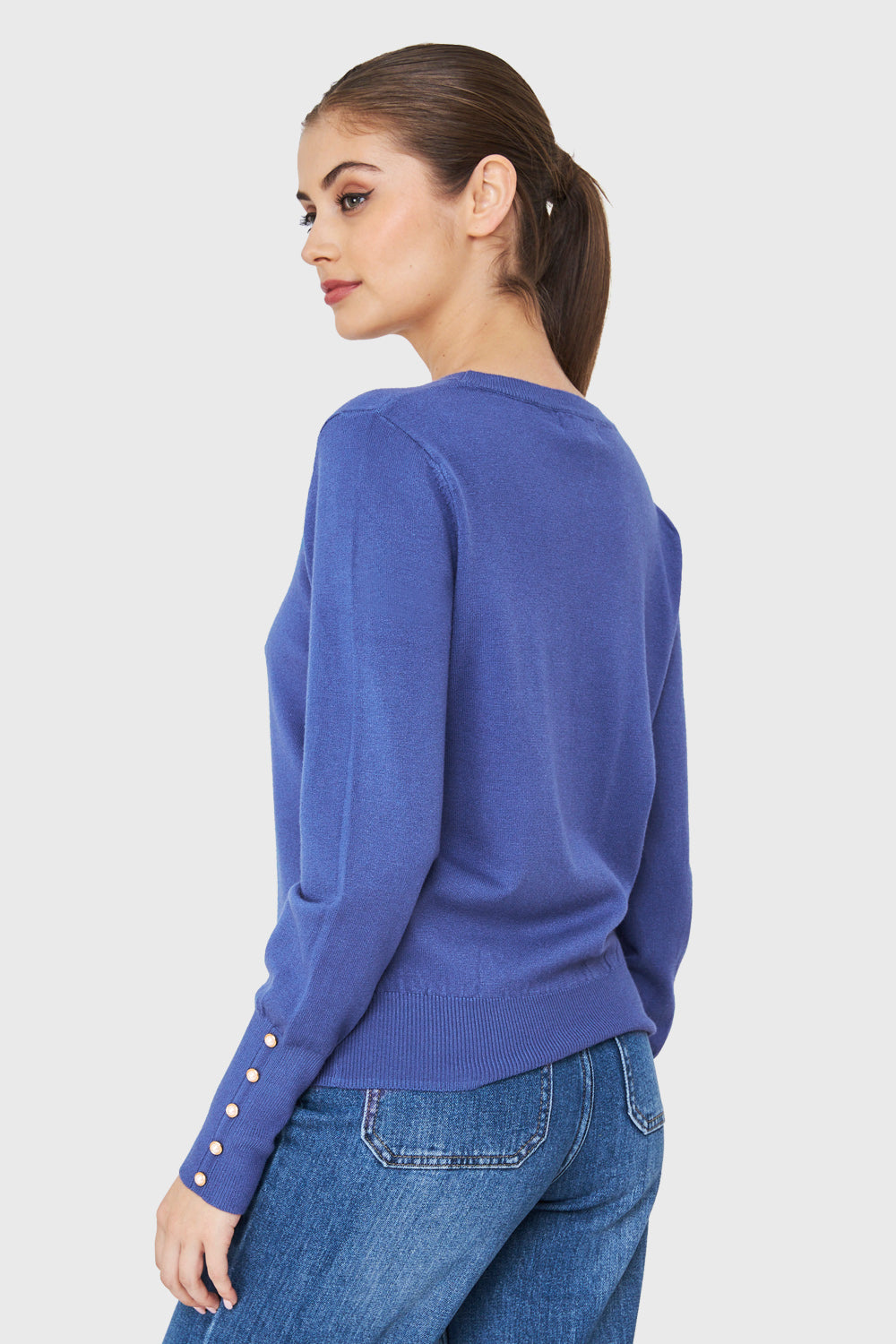 Sweater Punto Fino Detalles Perlas Azul Acero