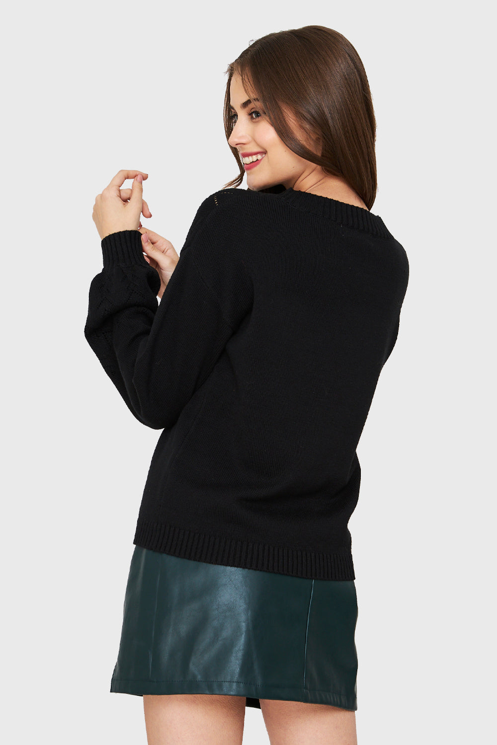 Características: Sweater tipo hilo manga globo con detalles calados en puños y escote. Pretina en puños y parte baja.