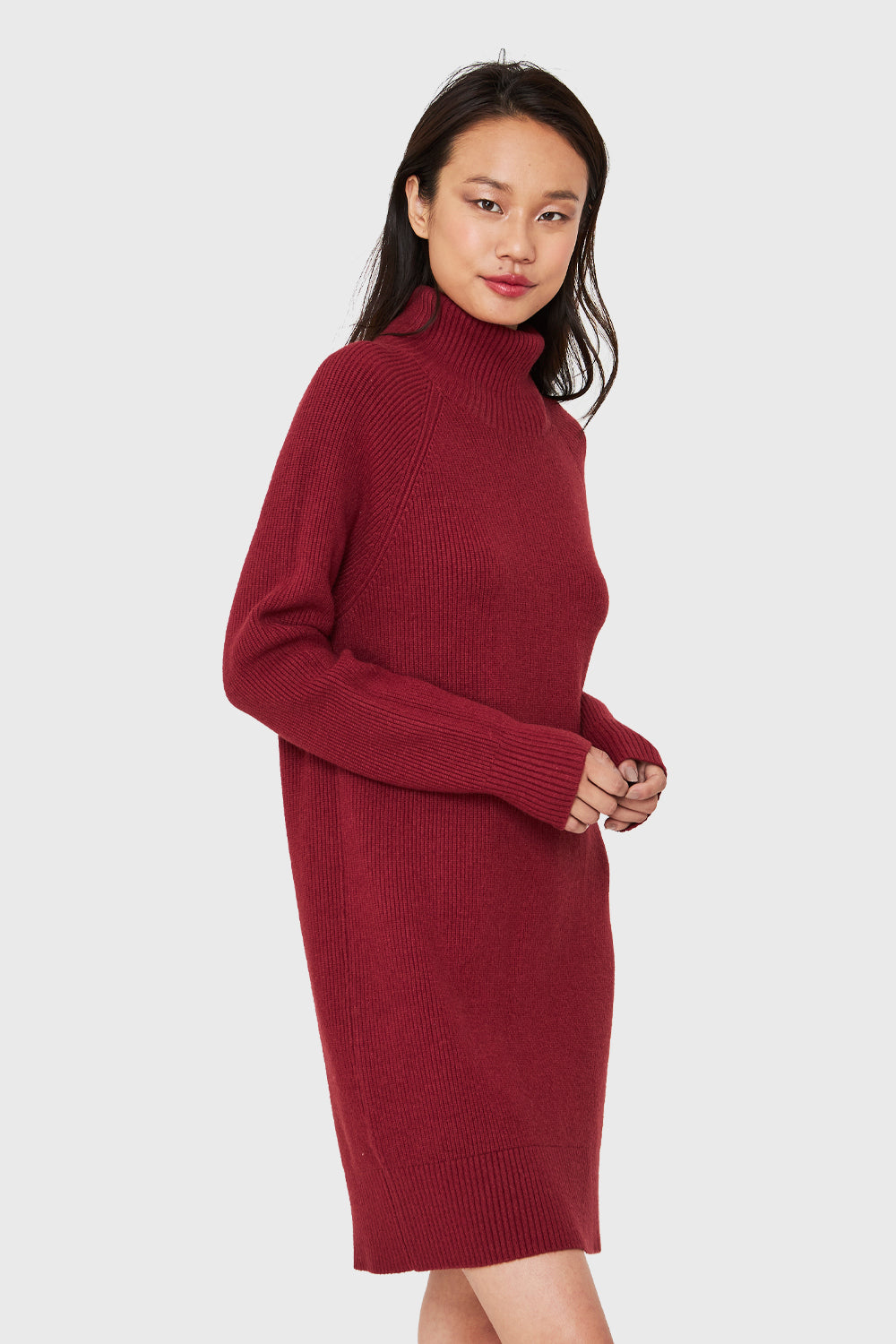 Características: Sweater tipo vestido acanalado con cuello alto y pretina en la parte baja.