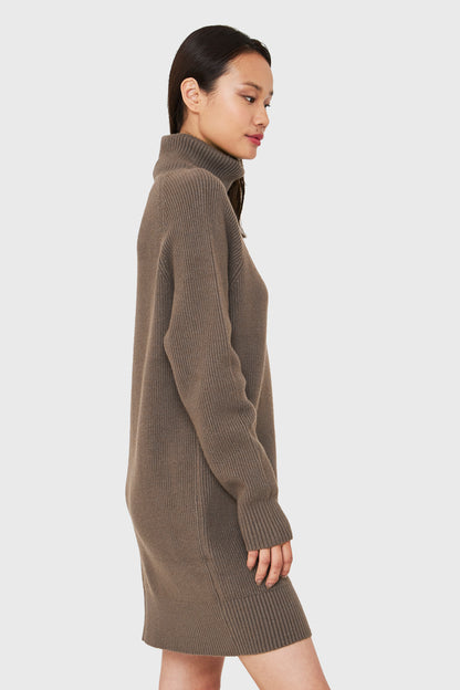 Sweater Vestido Acanalado Cuello Alto Taupe