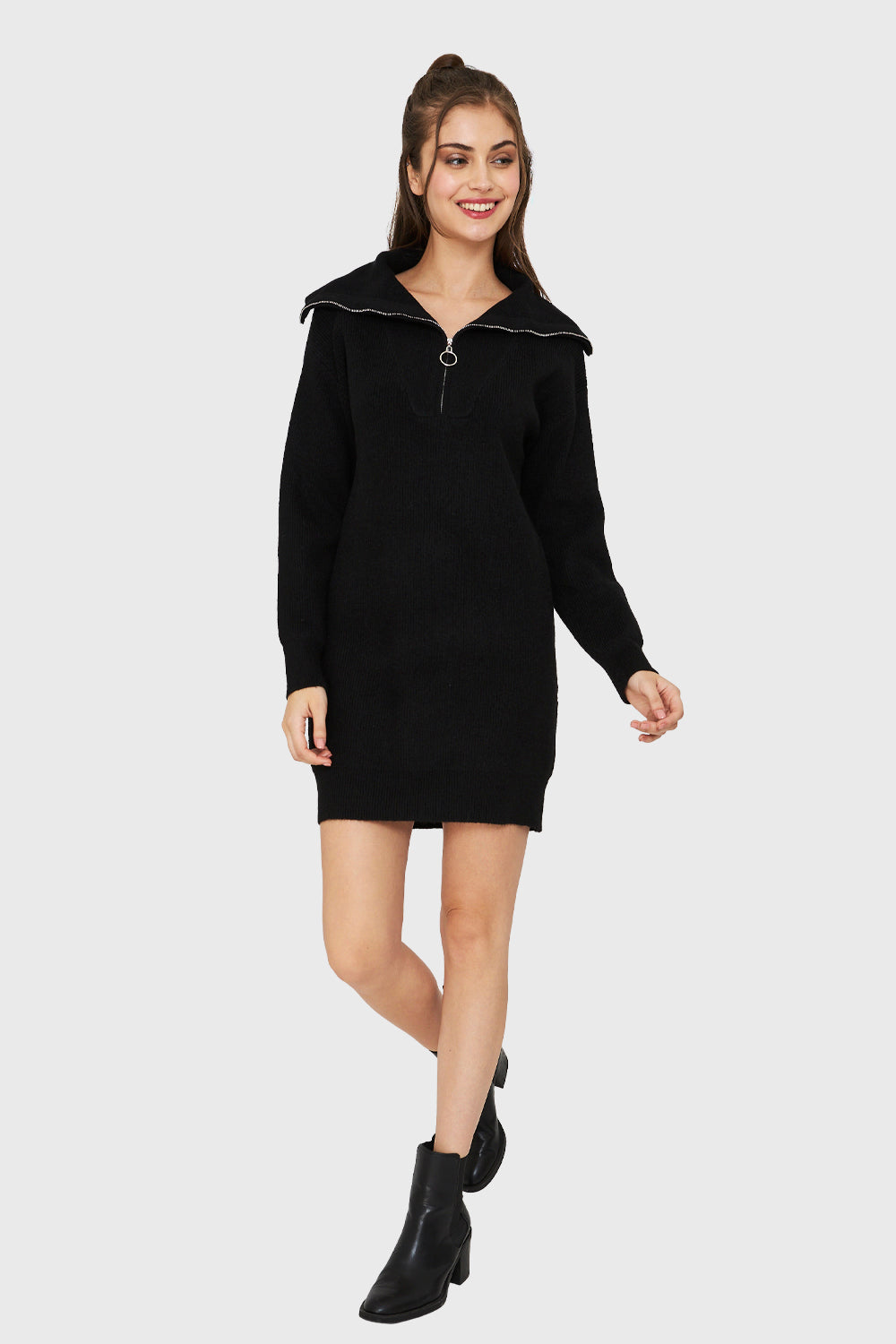 Sweater Vestido Cuello Con Cierre Negro