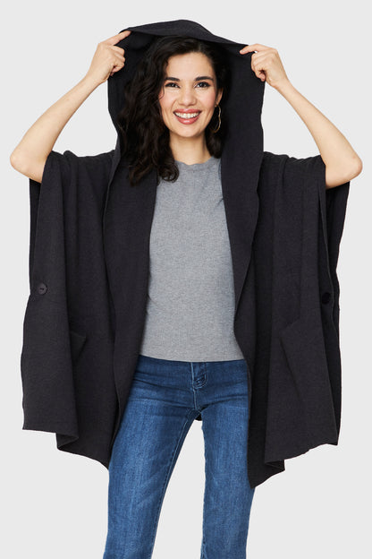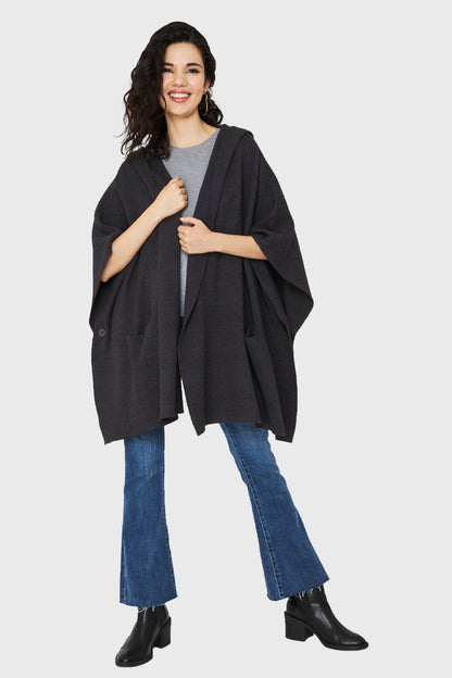 Características: Tapado holgado con gorro, manga 3/4 y bolsillos laterales. Posee botones para definir donde termina la manga. Detalle línea con relieve en la espalda.