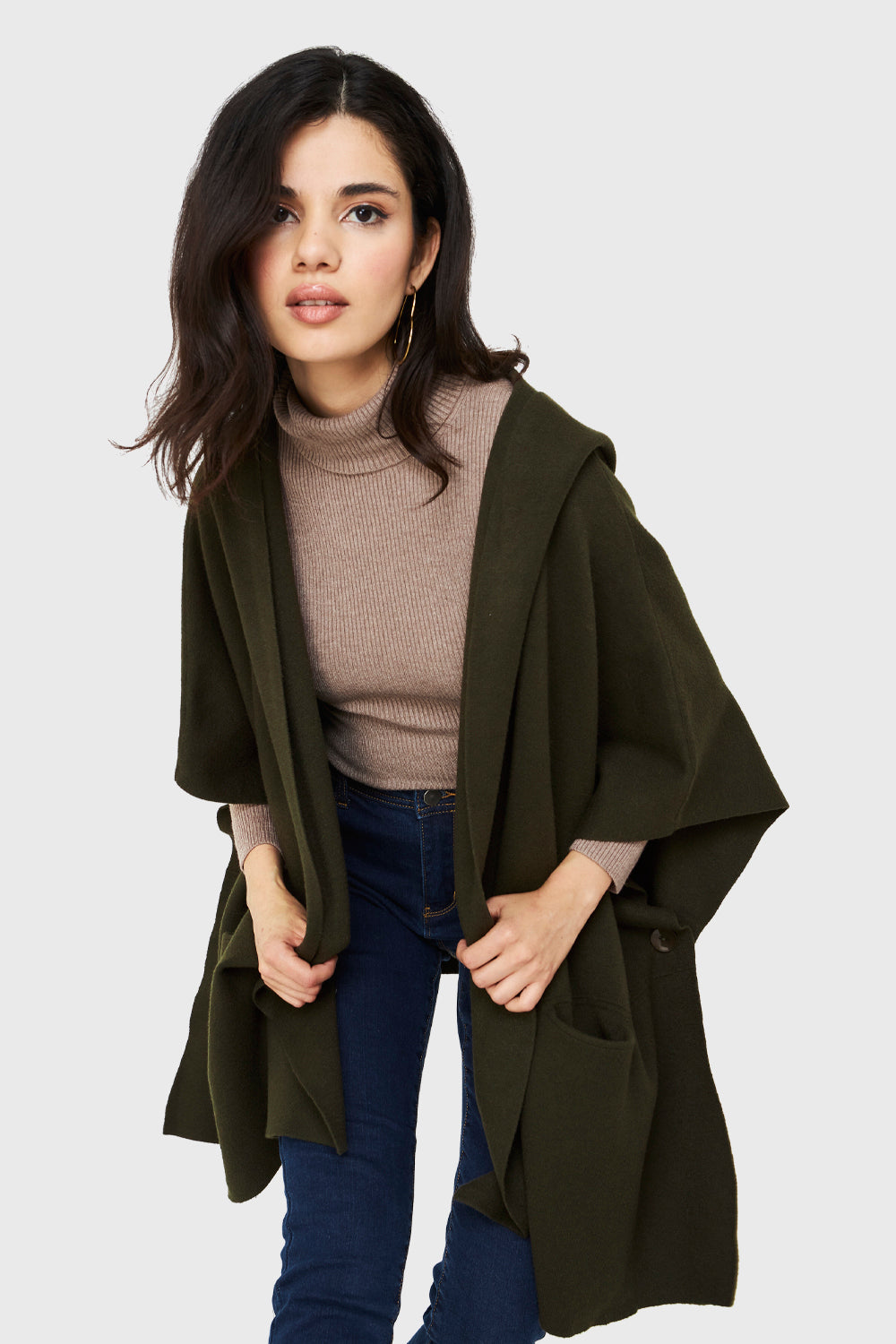 Características: Tapado holgado con gorro, manga 3/4 y bolsillos laterales. Posee botones para definir donde termina la manga. Detalle línea con relieve en la espalda.