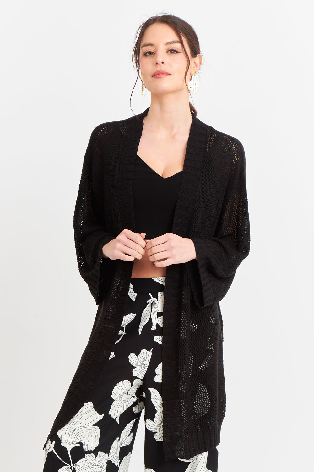 Características: Tapado de hombros caídos. Tejido estilo crochet. Mangas largas con terminación acanalada.
