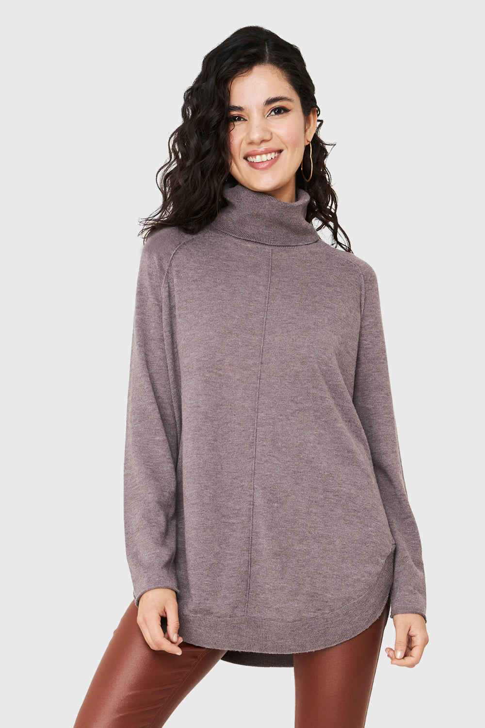 Características: Tejido cuello tortuga con abertura lateral. Detalle de línea con relieve frontal.