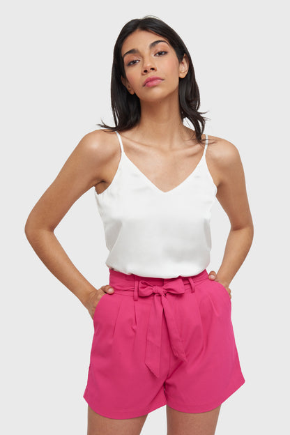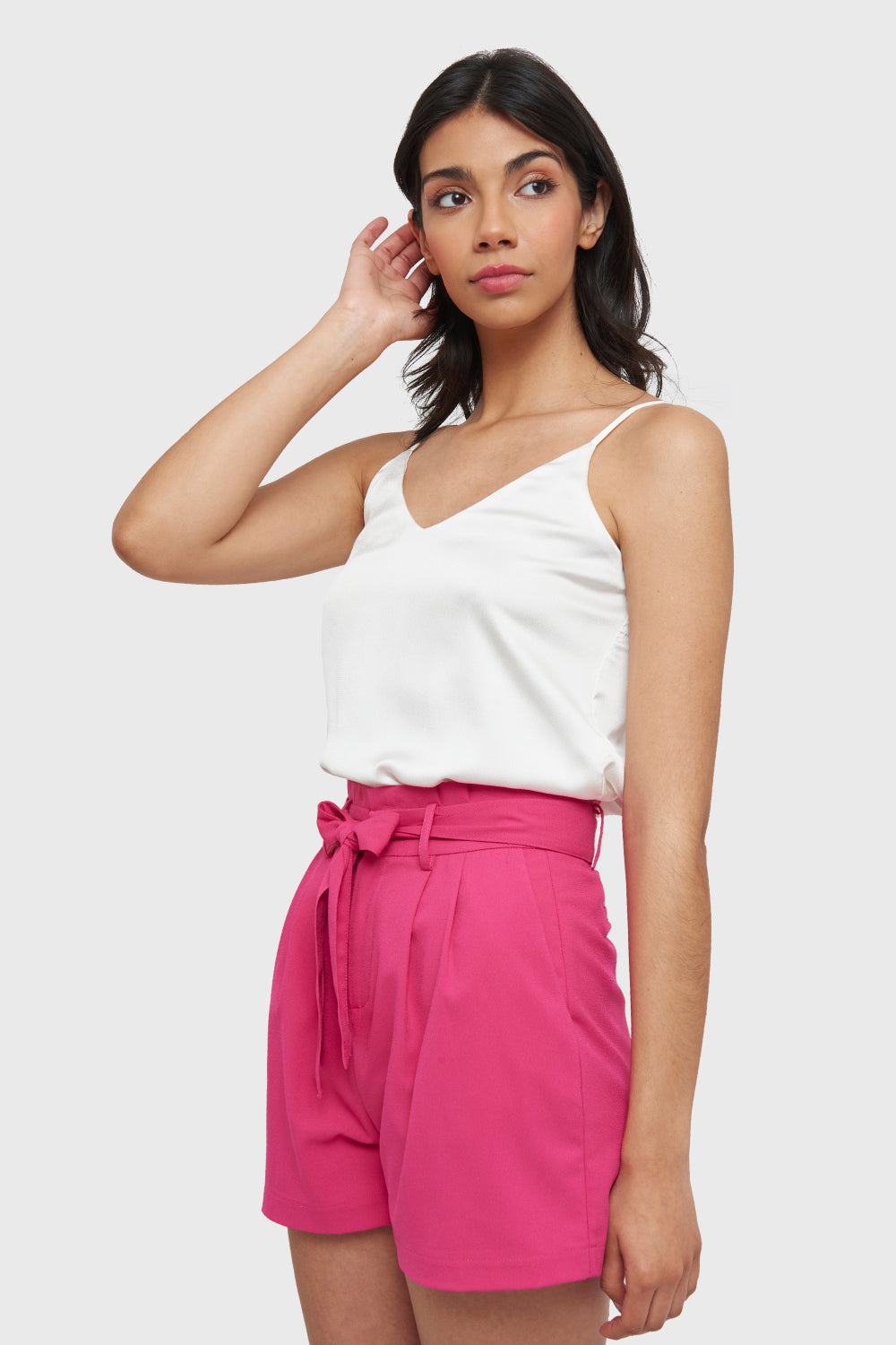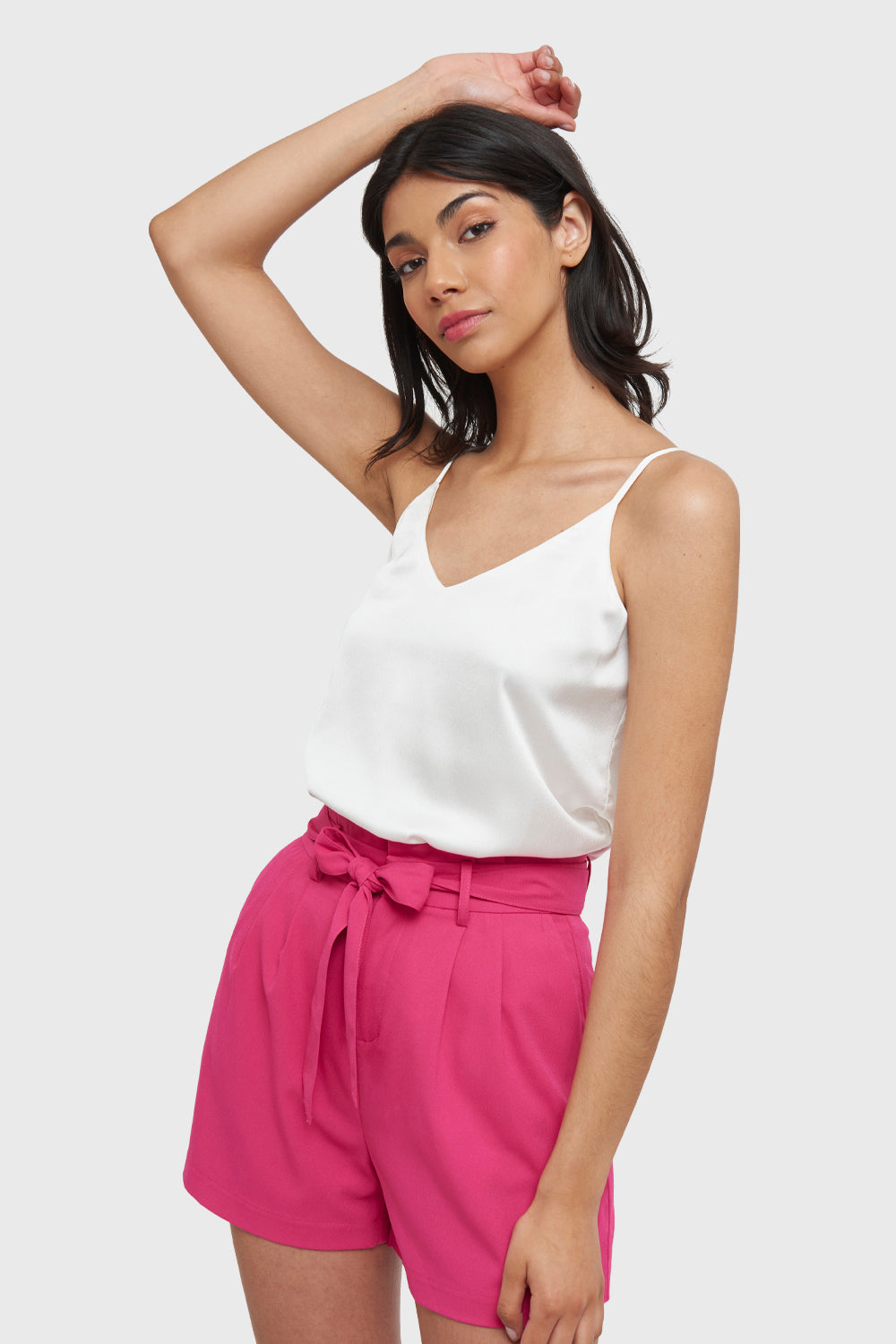 Características: Blusa pabilo con escote en V. Tipo satín con pabilo ajustable. Basta con corte redondo. Posee forro.