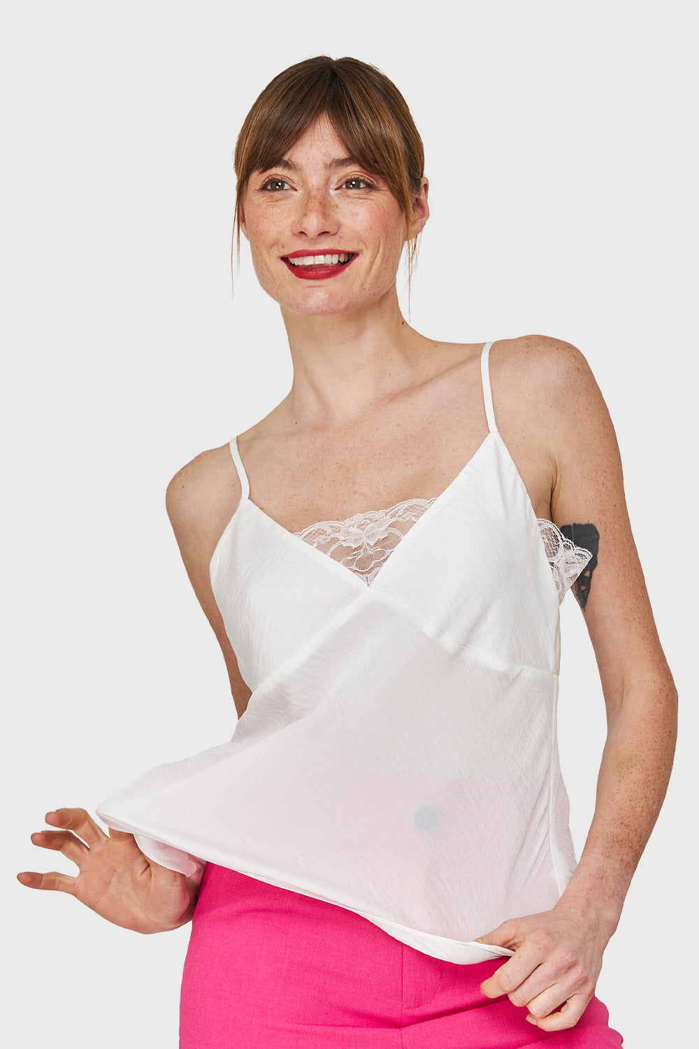 Características: Top lencero de pabilo ajustable con escote en V y encaje.