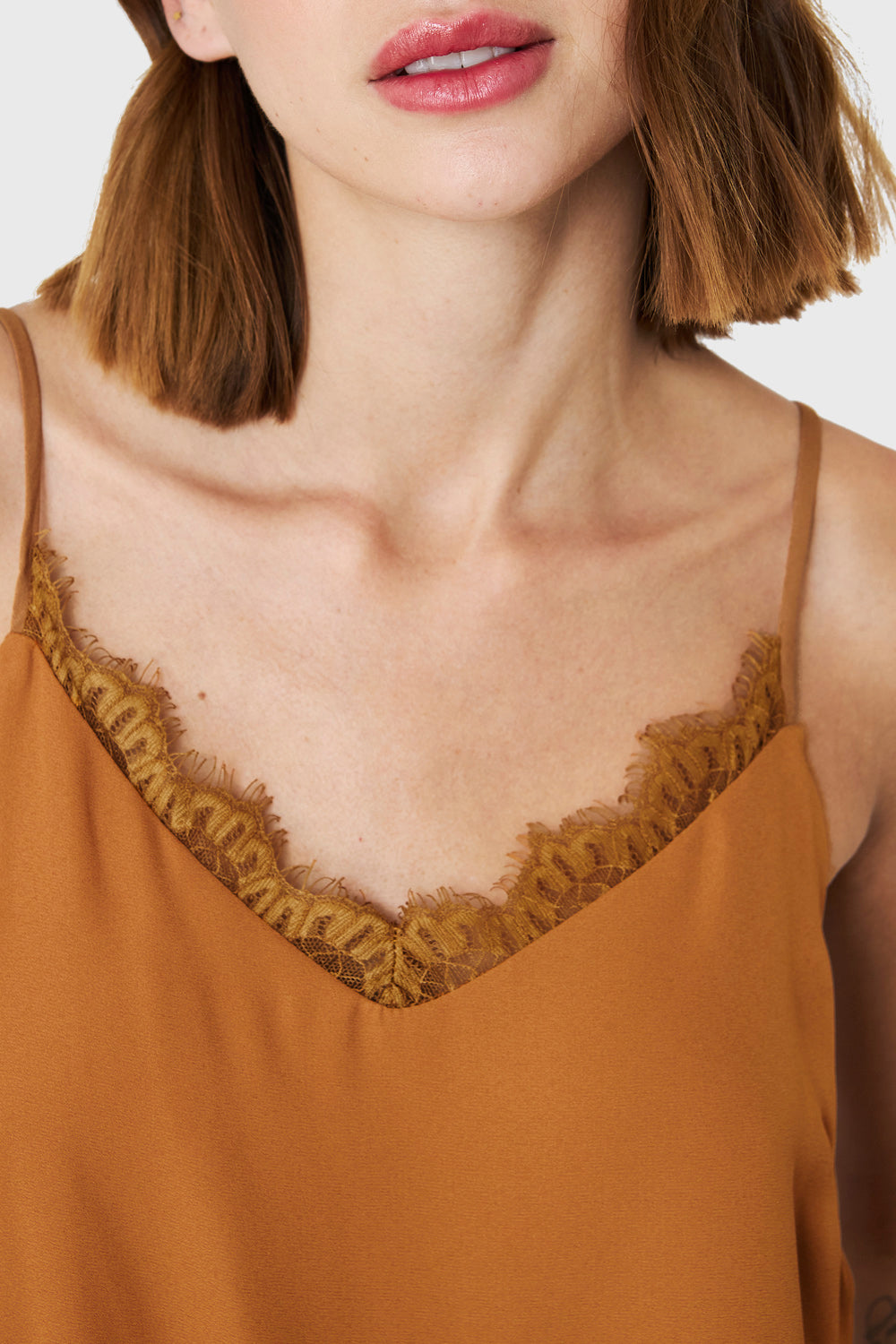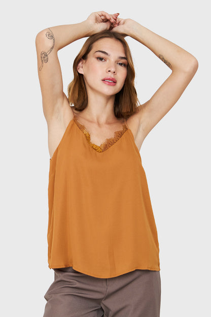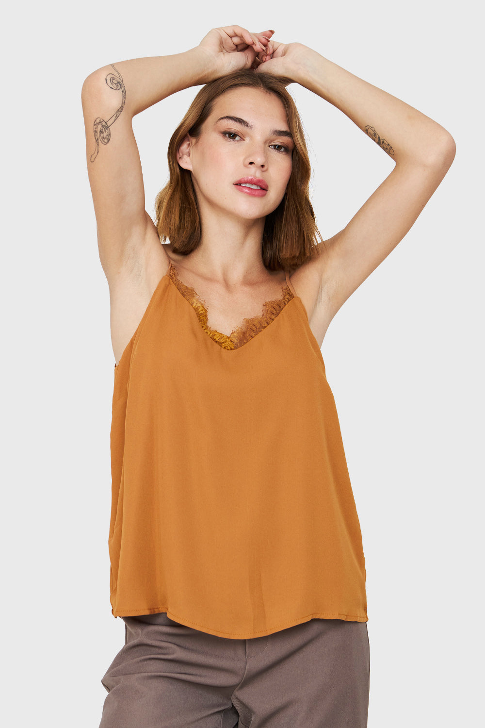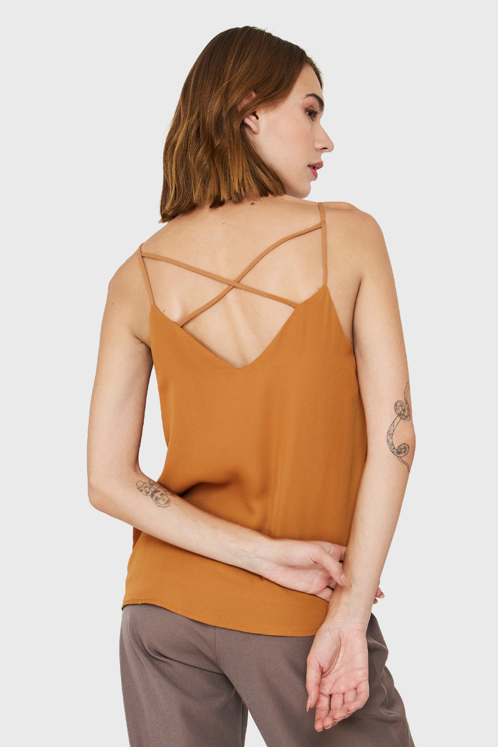Características: Top Pabilo con espalda cruzada con forro interno. Escote en "V" con detalle de encaje.