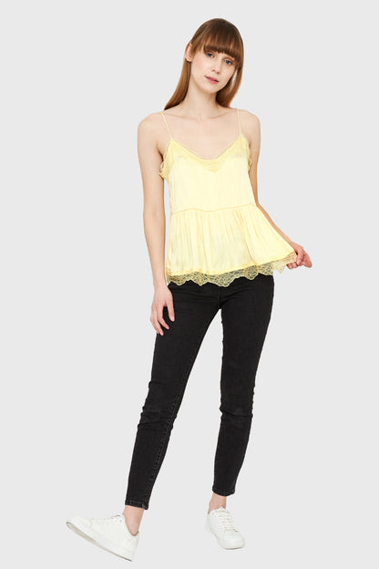 Características: Blusa pabilo cuello V con encaje en escote y parte baja.
