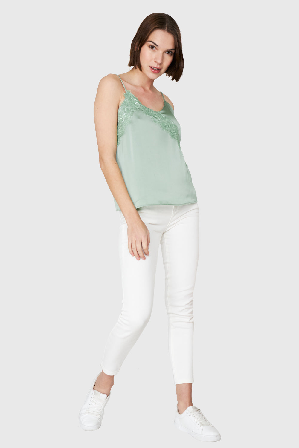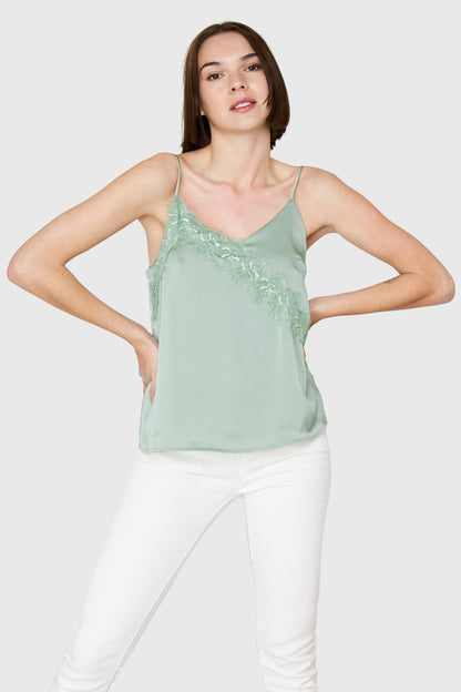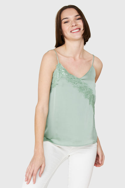 Top Tipo Satín Encaje Menta