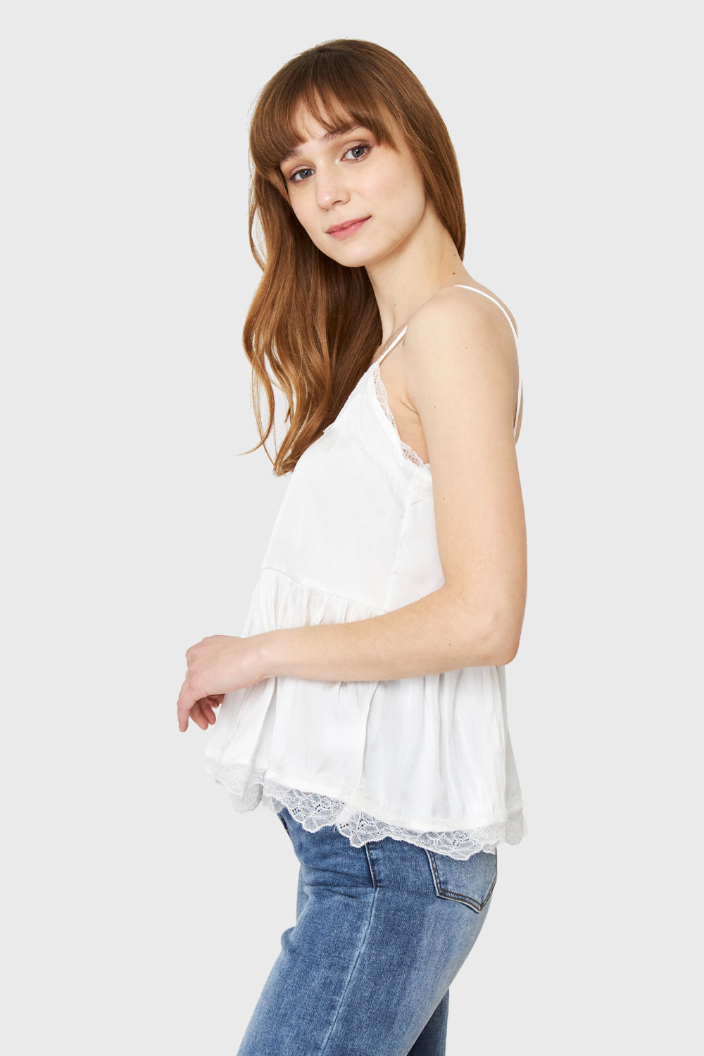 Características: Blusa pabilo cuello V con encaje en escote y parte baja.