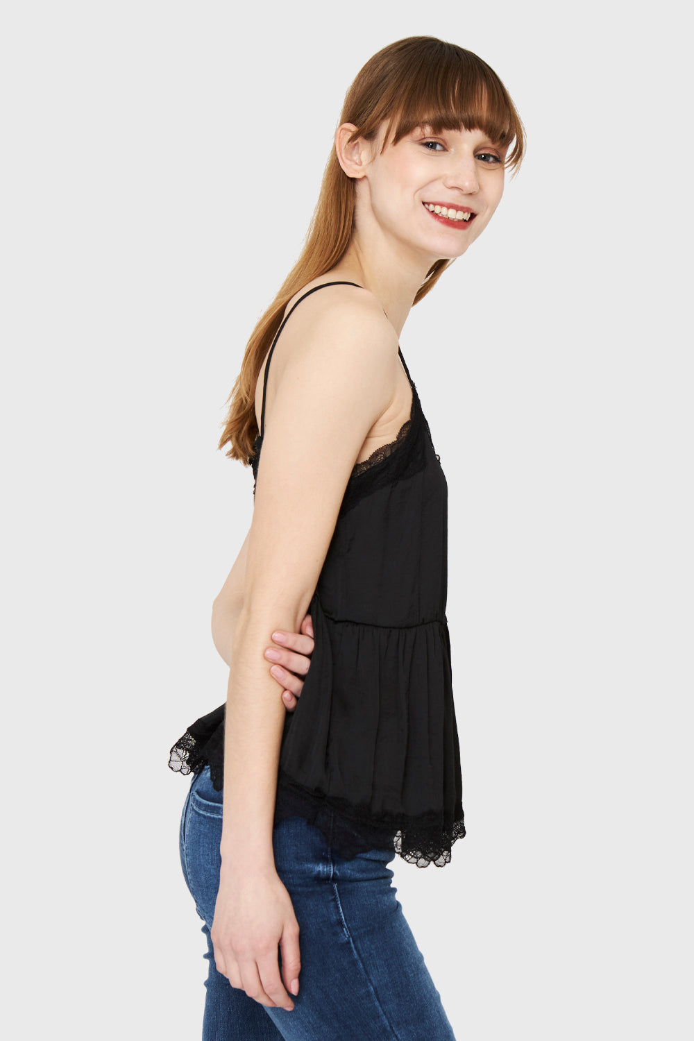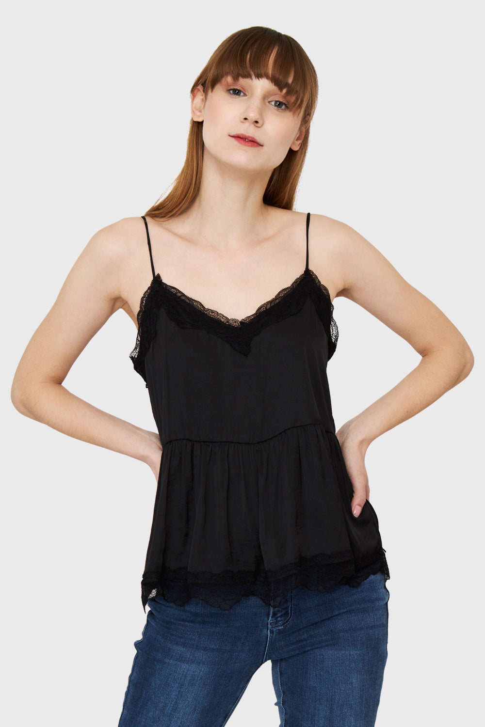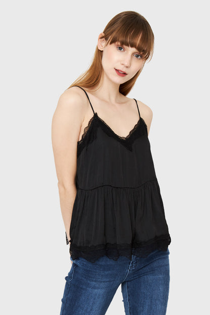 Características: Blusa pabilo cuello V con encaje en escote y parte baja.