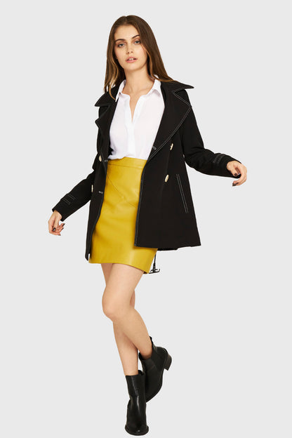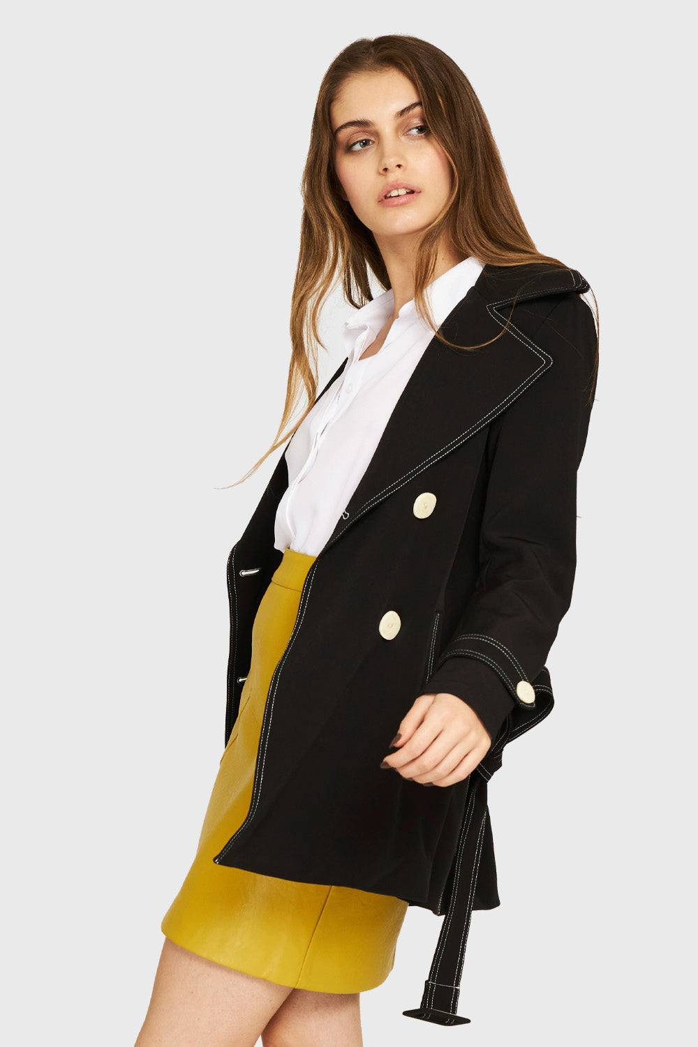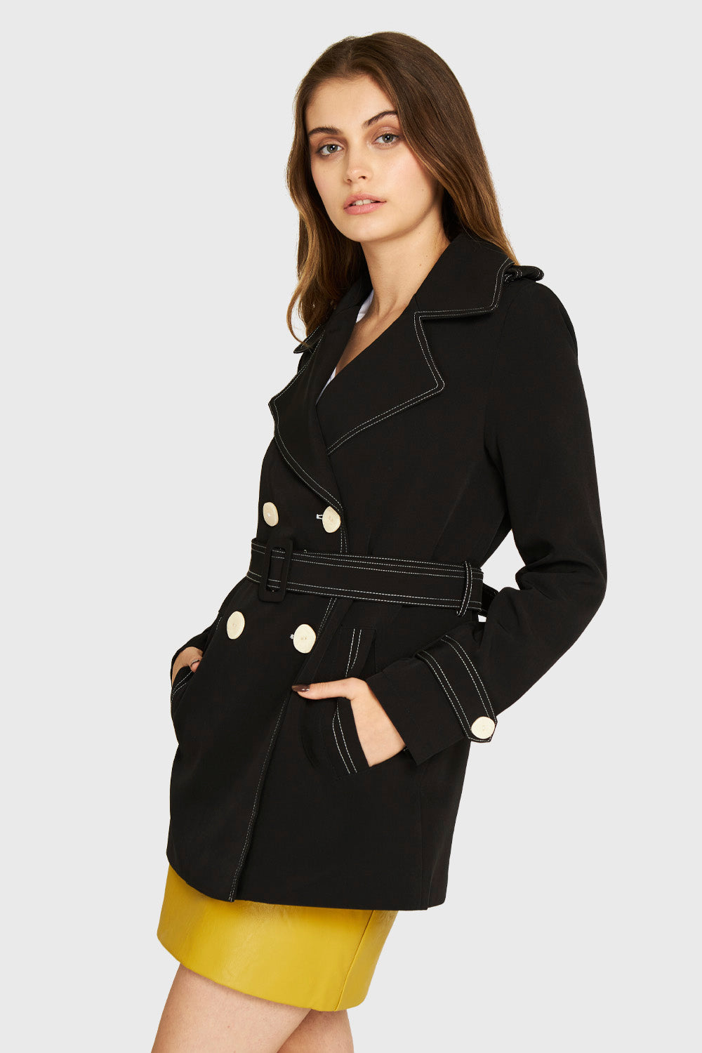 Características: Trench detalle pespunte con cinturón y botones de ajuste y bolsillos laterales.