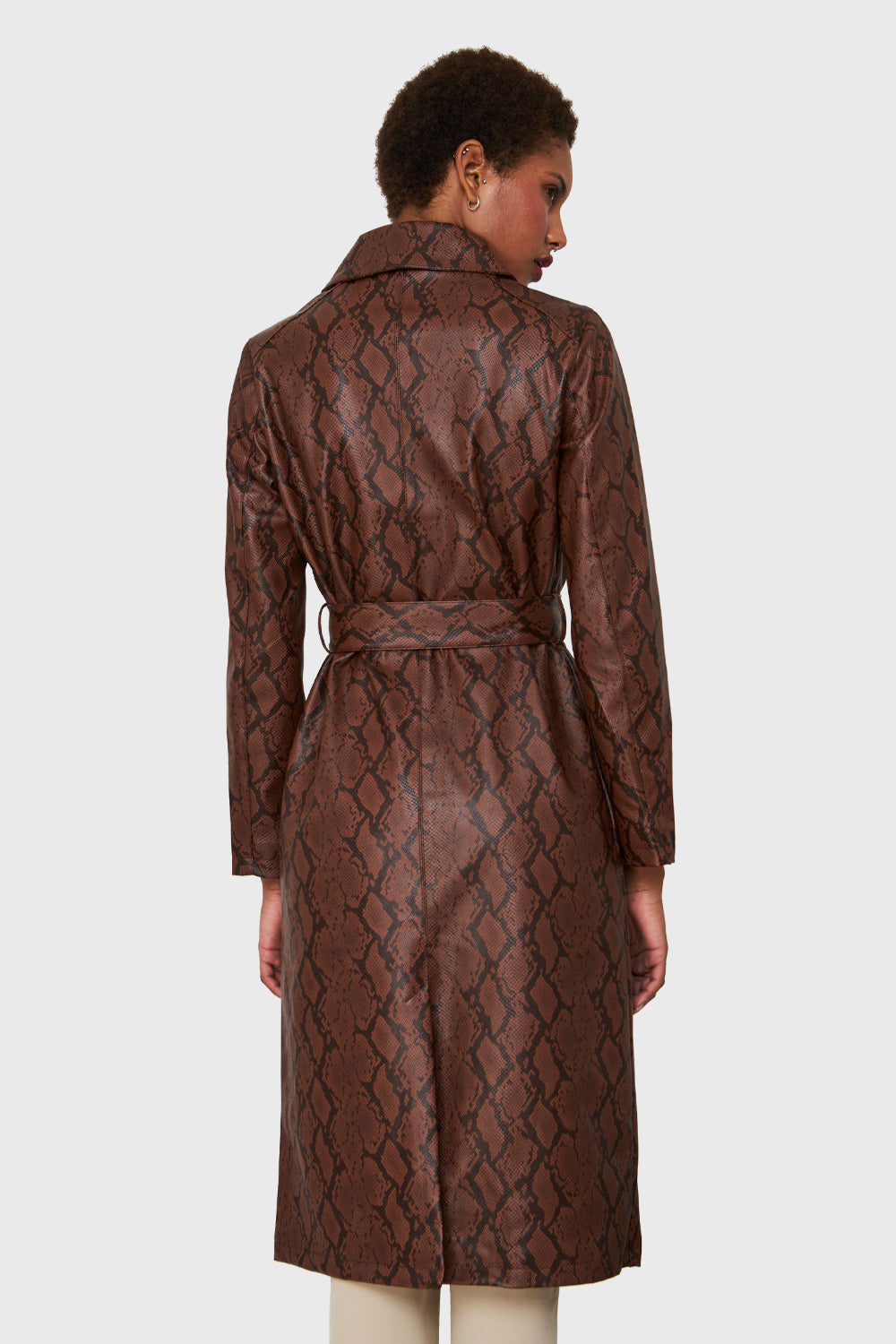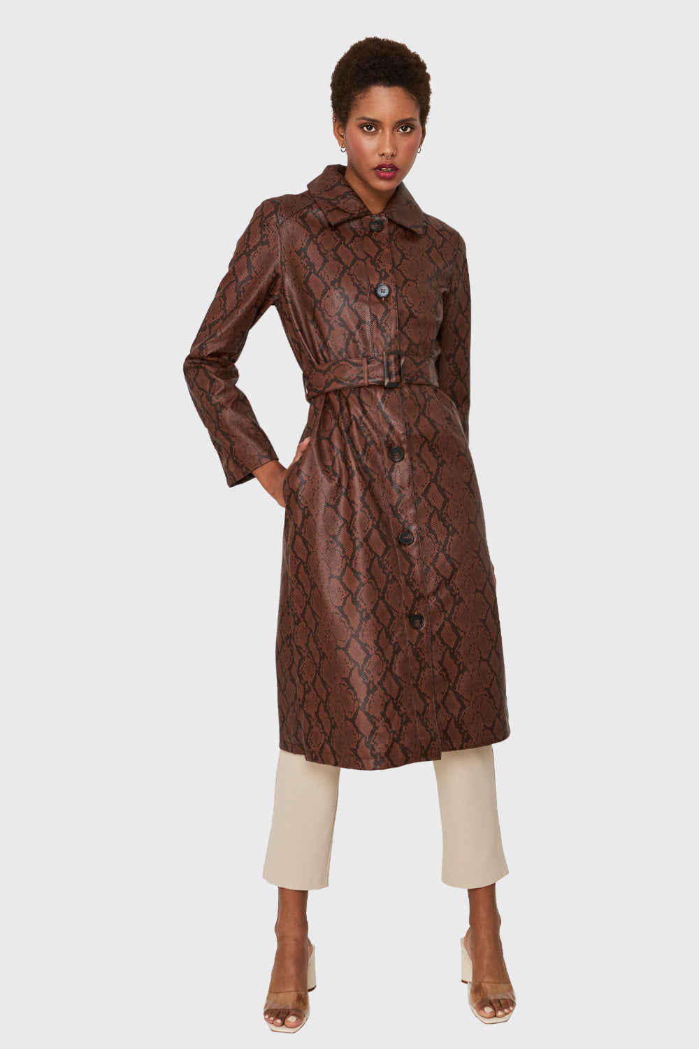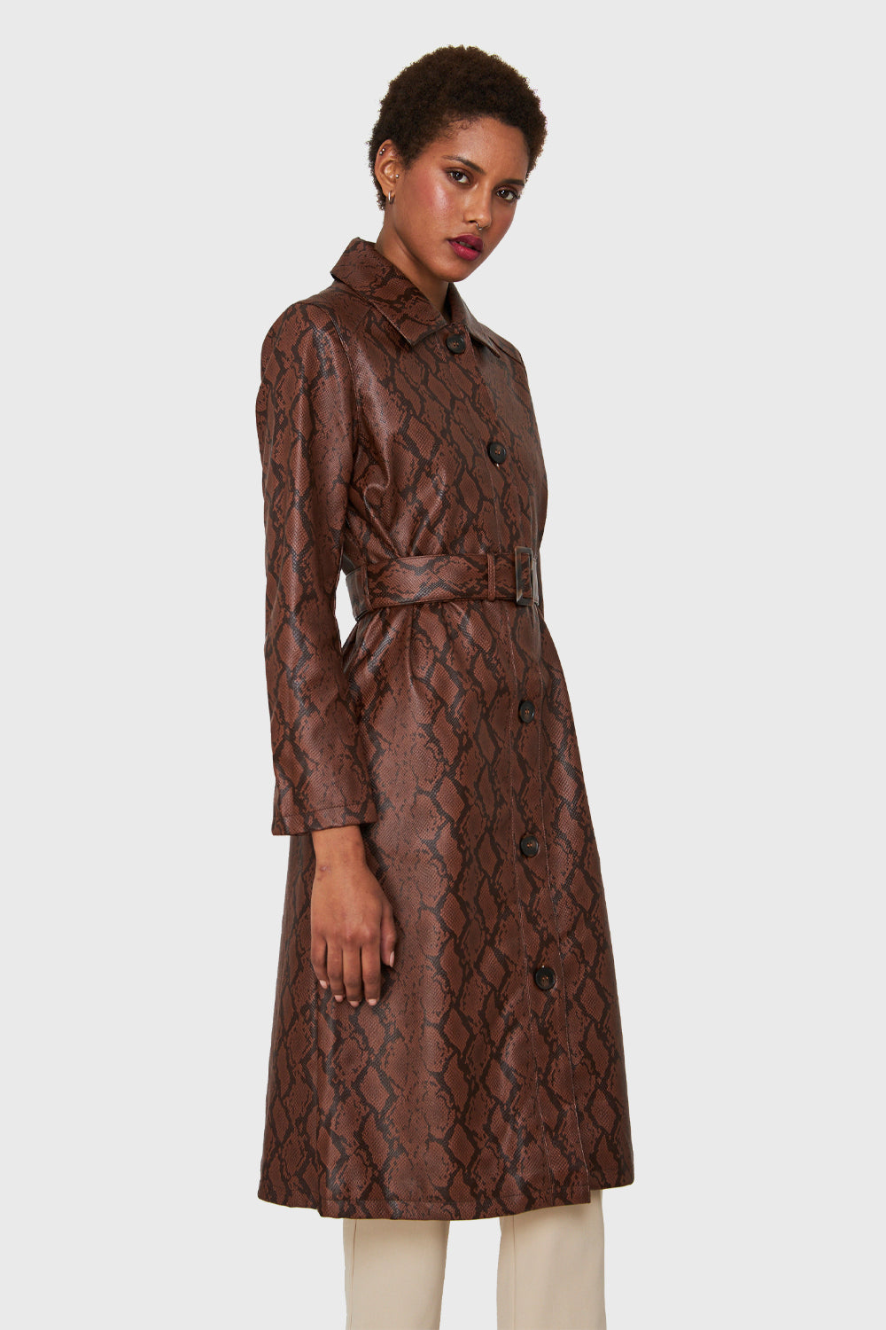 Características: Trench ecocuero estampado snake. Botones y cinturón de ajuste. Bolsillos funcionales.