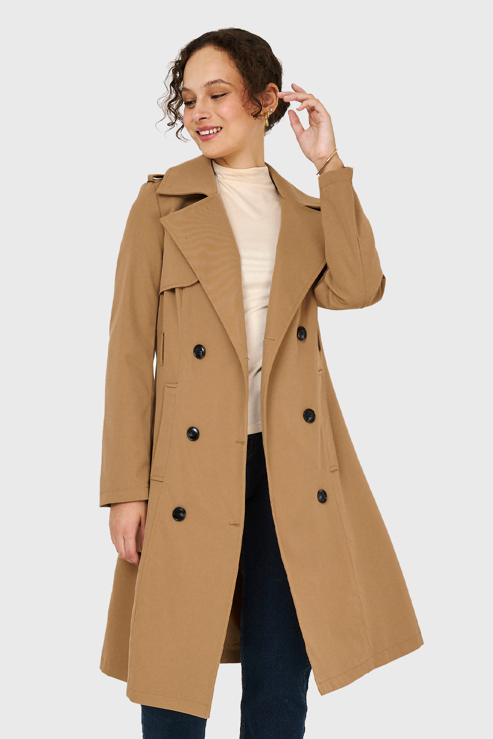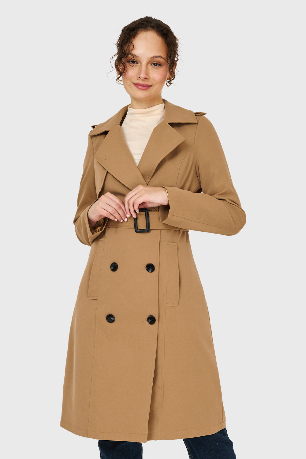 Características: Trench con cinturón para ajuste. Bolsillos funcionales, botón interno de ajuste y doble botonera de ajuste frontal. Es forrado.