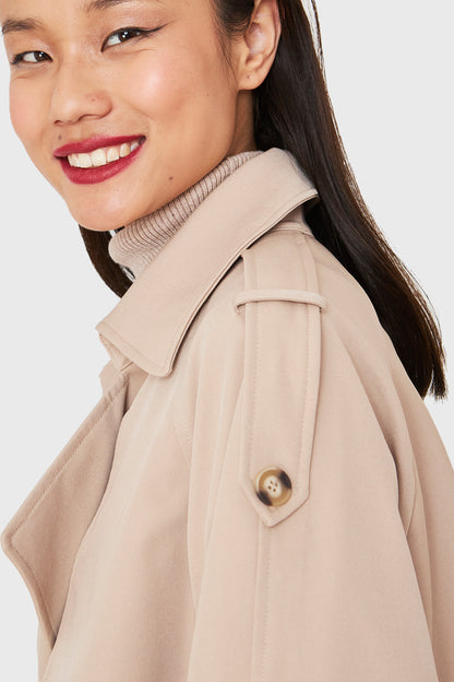 Características: Trench midi con botones de ajuste, lazo y bolsillos funcionales.