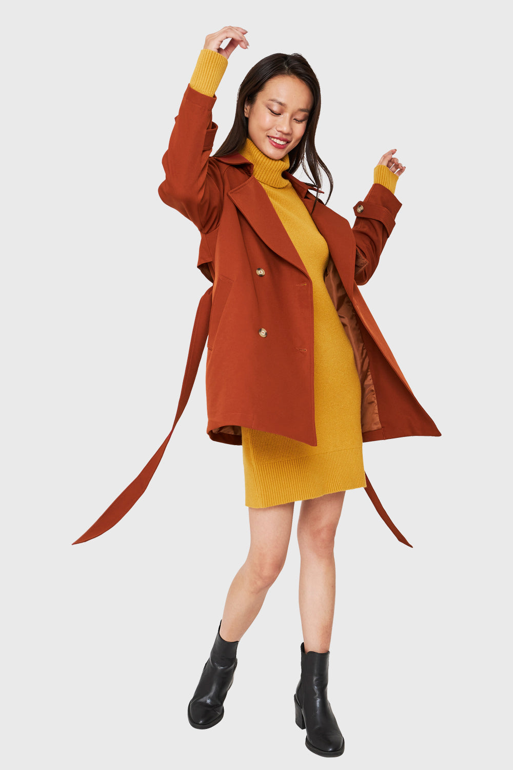 Características: Trench midi con botones de ajuste, lazo y bolsillos funcionales.