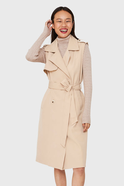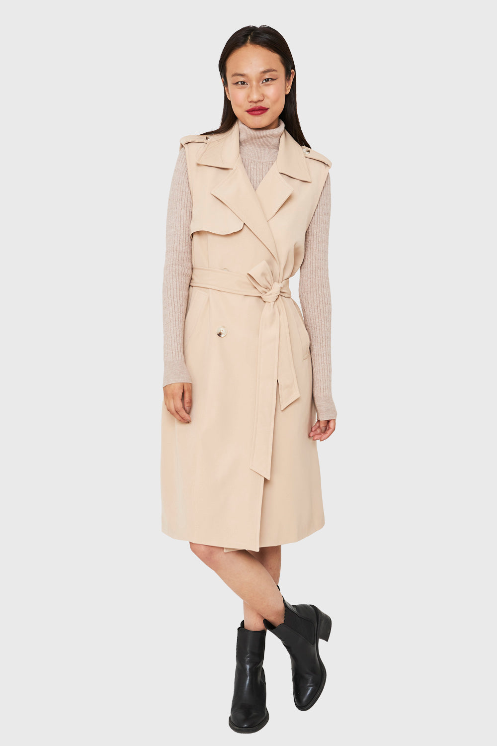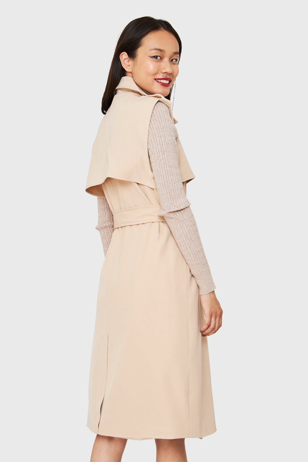 Características: Trench sin mangas con lazo de ajuste, botones frontales para ajuste y bolsillos funcionales.