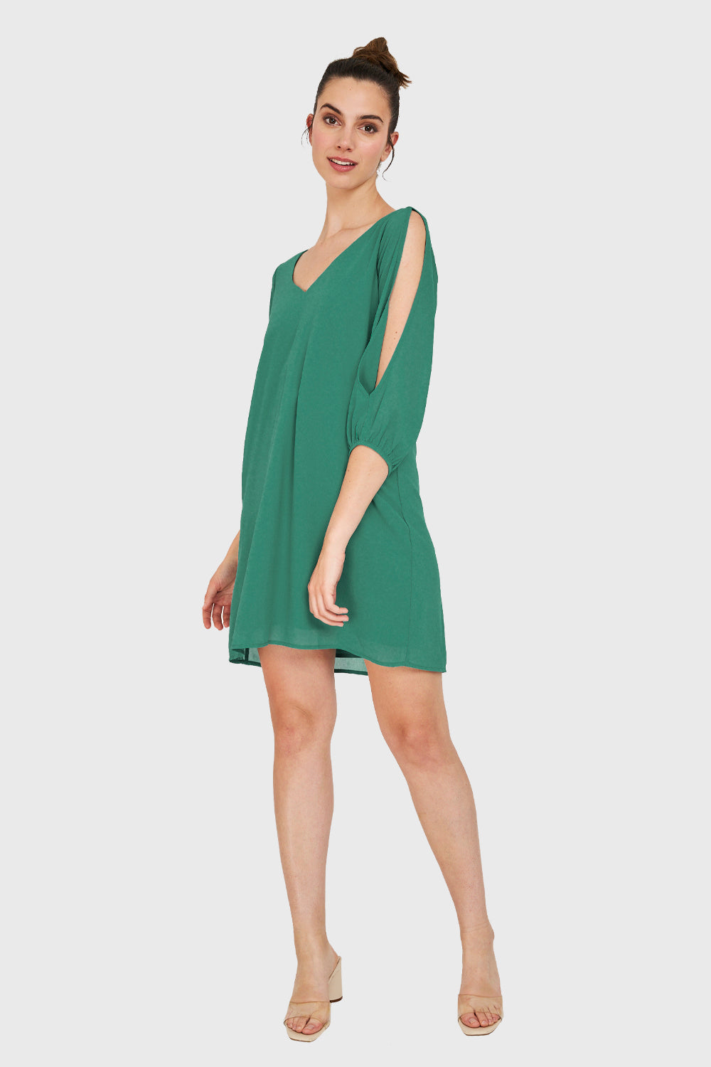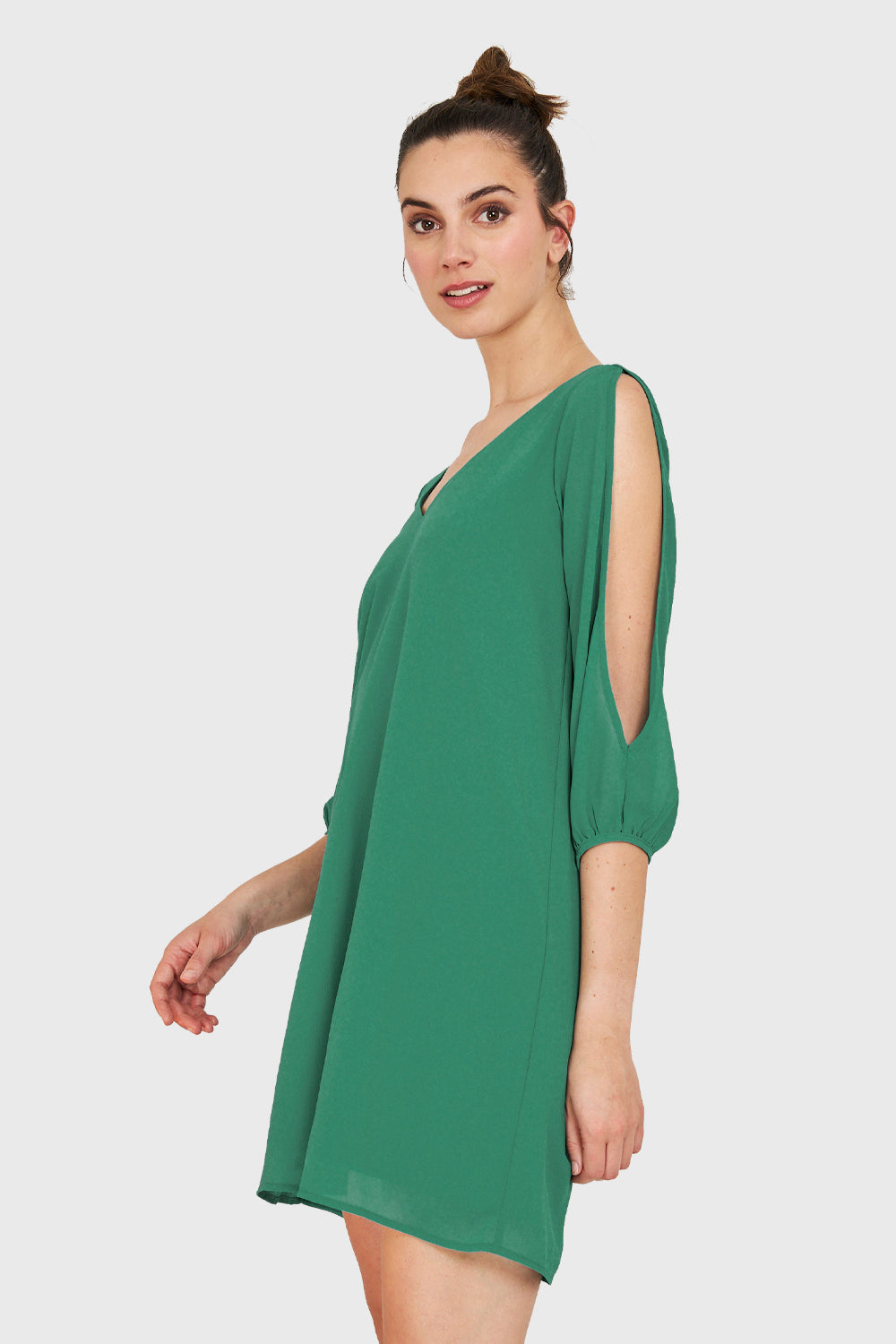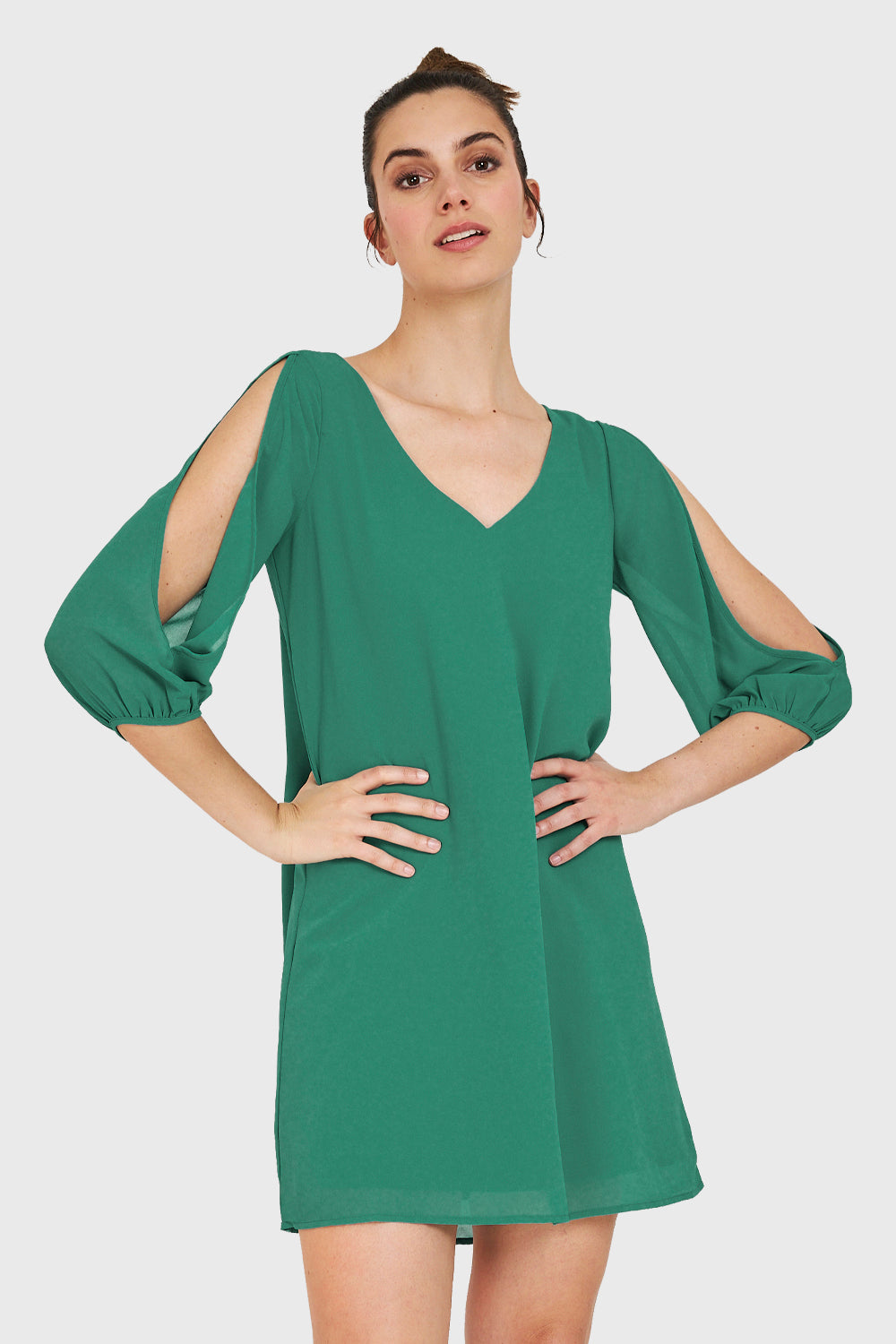 Características: Vestido corte recto con mangas 3/4 transparentes y cut out en estas. Posee forro.
