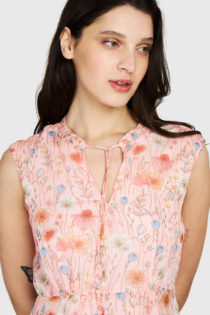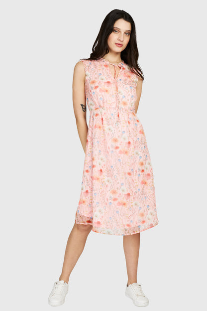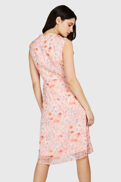 Vestido Amapolas Cuello Mao Rosado