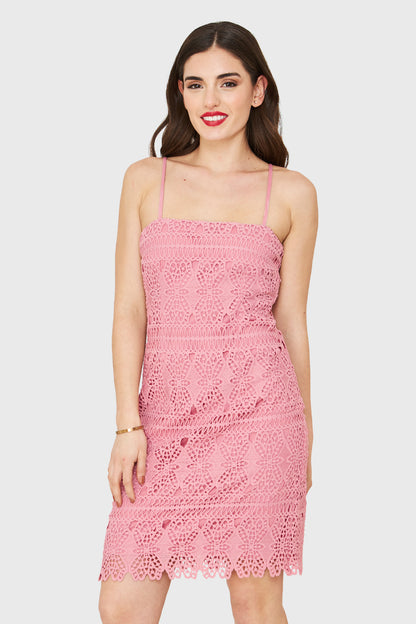 Características: Vestido calado tipo broderie con cierre lateral. Posee forro y tirantes ajustables.