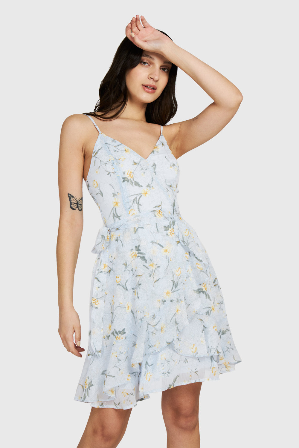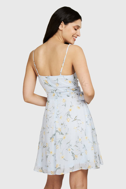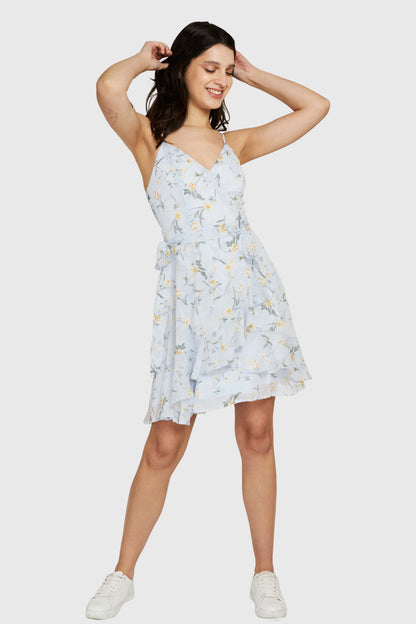 Vestido Corto Floral Vuelos Celeste