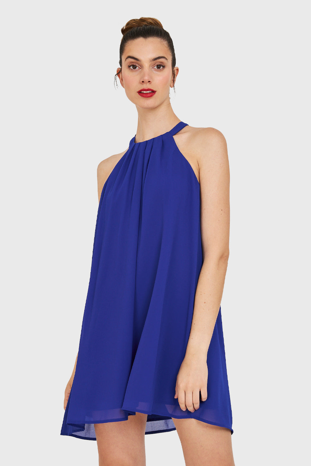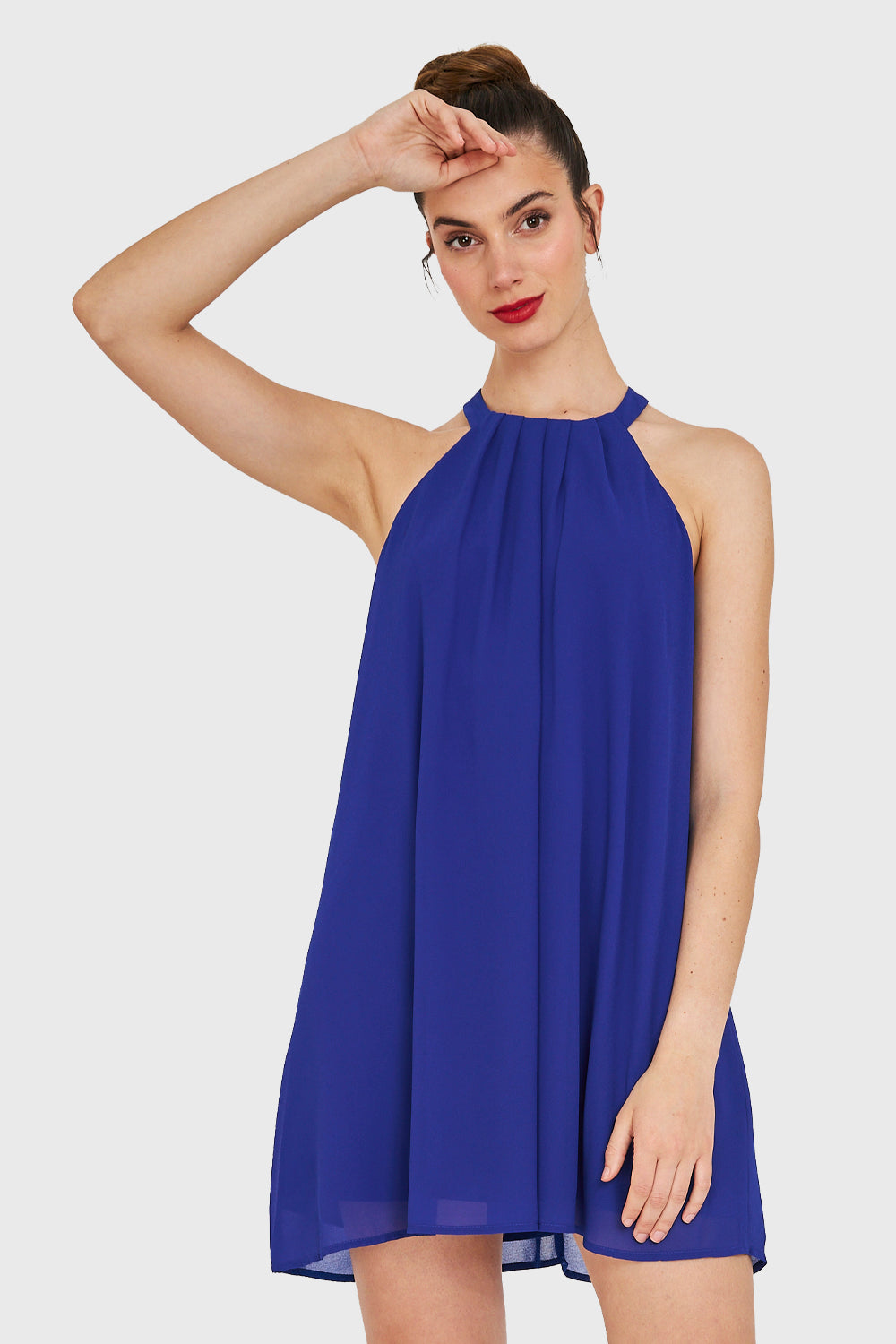 Características: Vestido corto halter con 2 botones de ajuste en cuello. Posee forro.