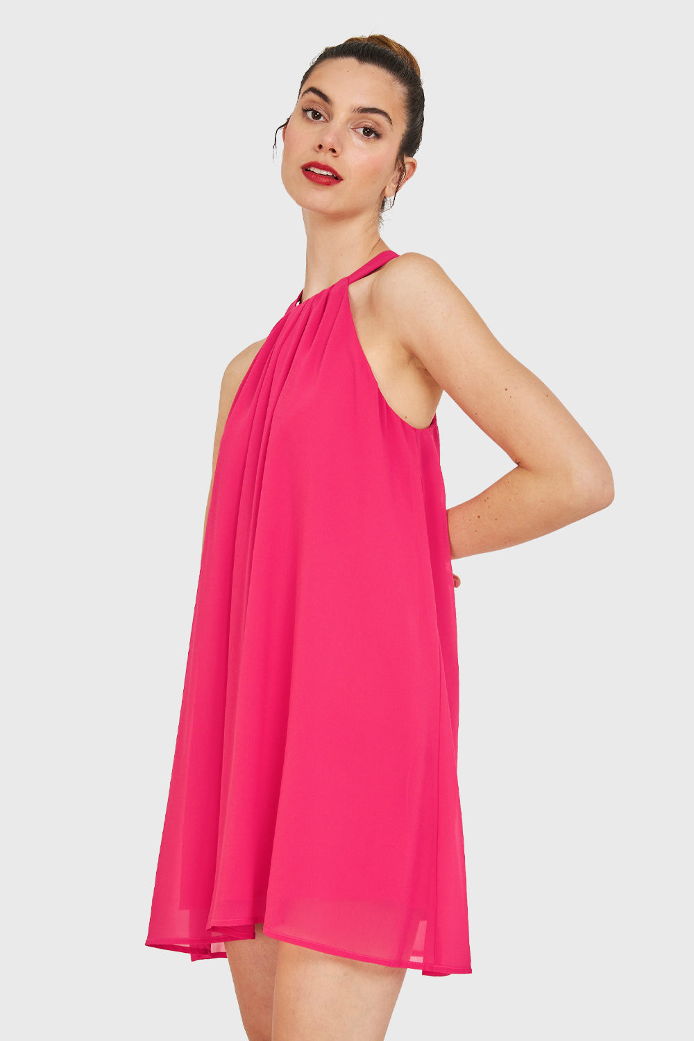Características: Vestido corto halter con 2 botones de ajuste en cuello. Posee forro.