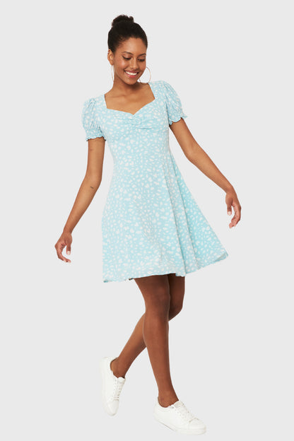 Vestido Corto Print Dálmata Celeste
