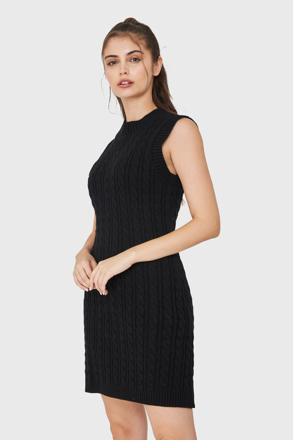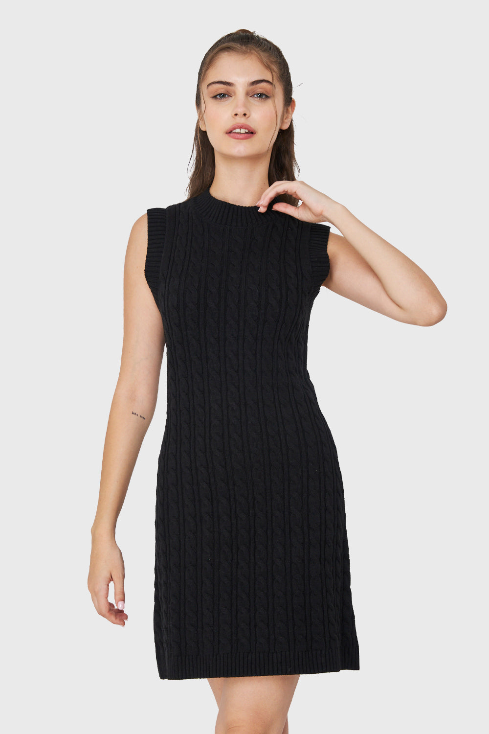 Características: Vestido sin mangas corto de punto trenzado.