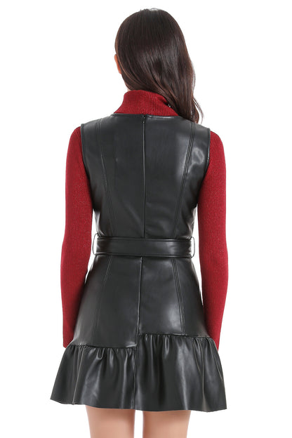 Vestido Ecocuero Cinturón Negro