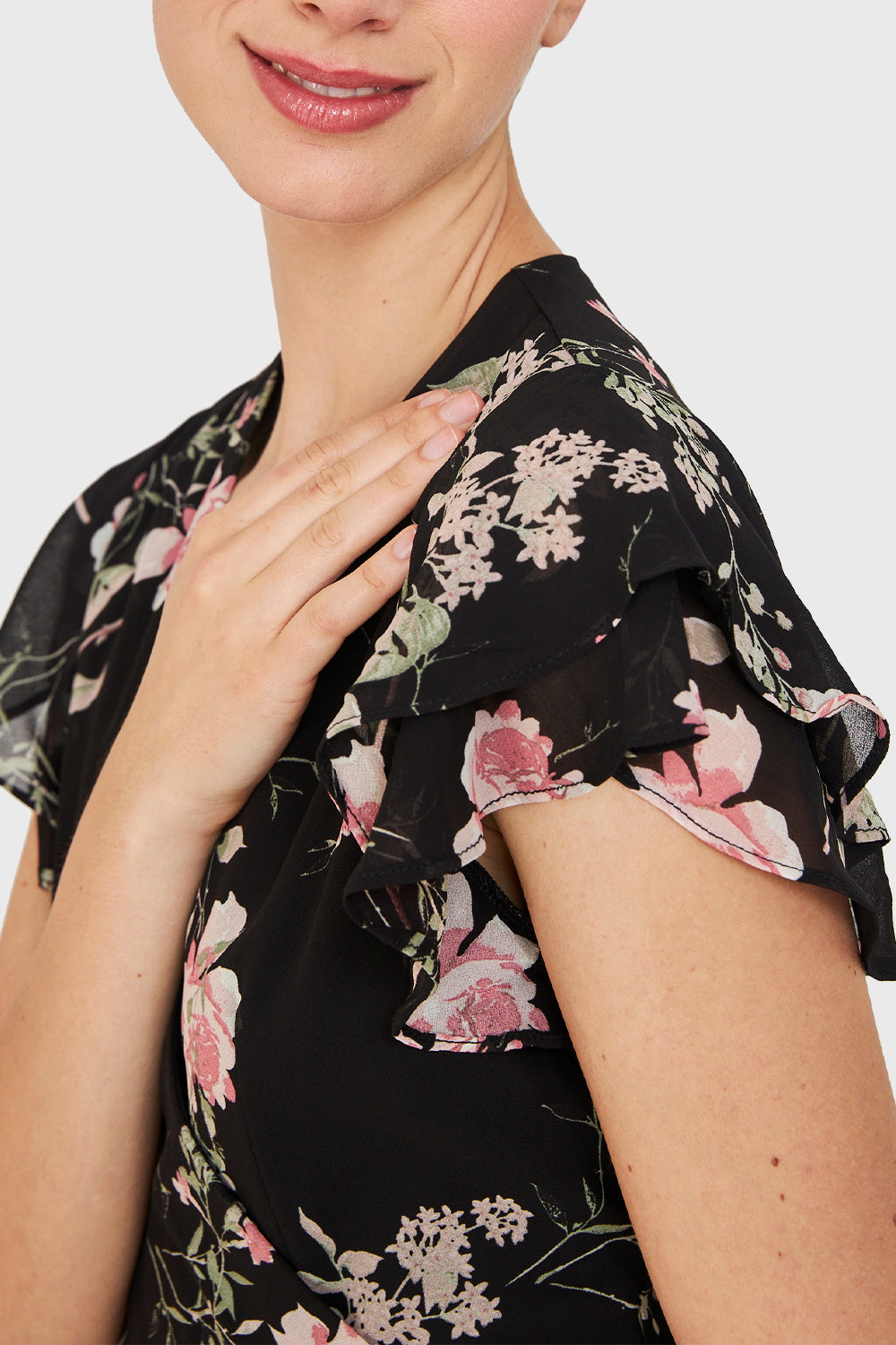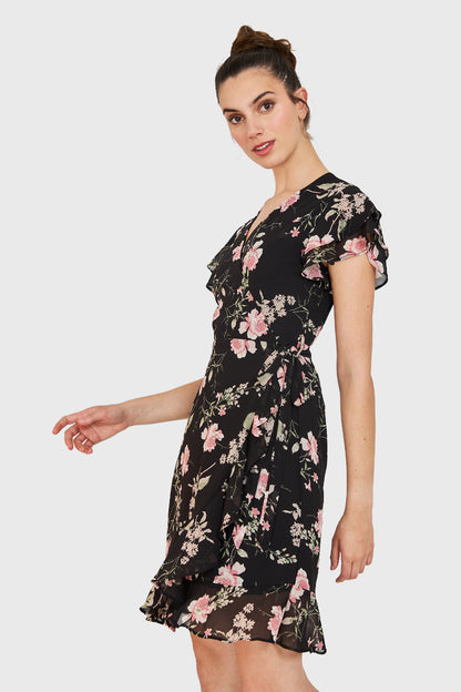 Vestido Envolvente Floreado Negro