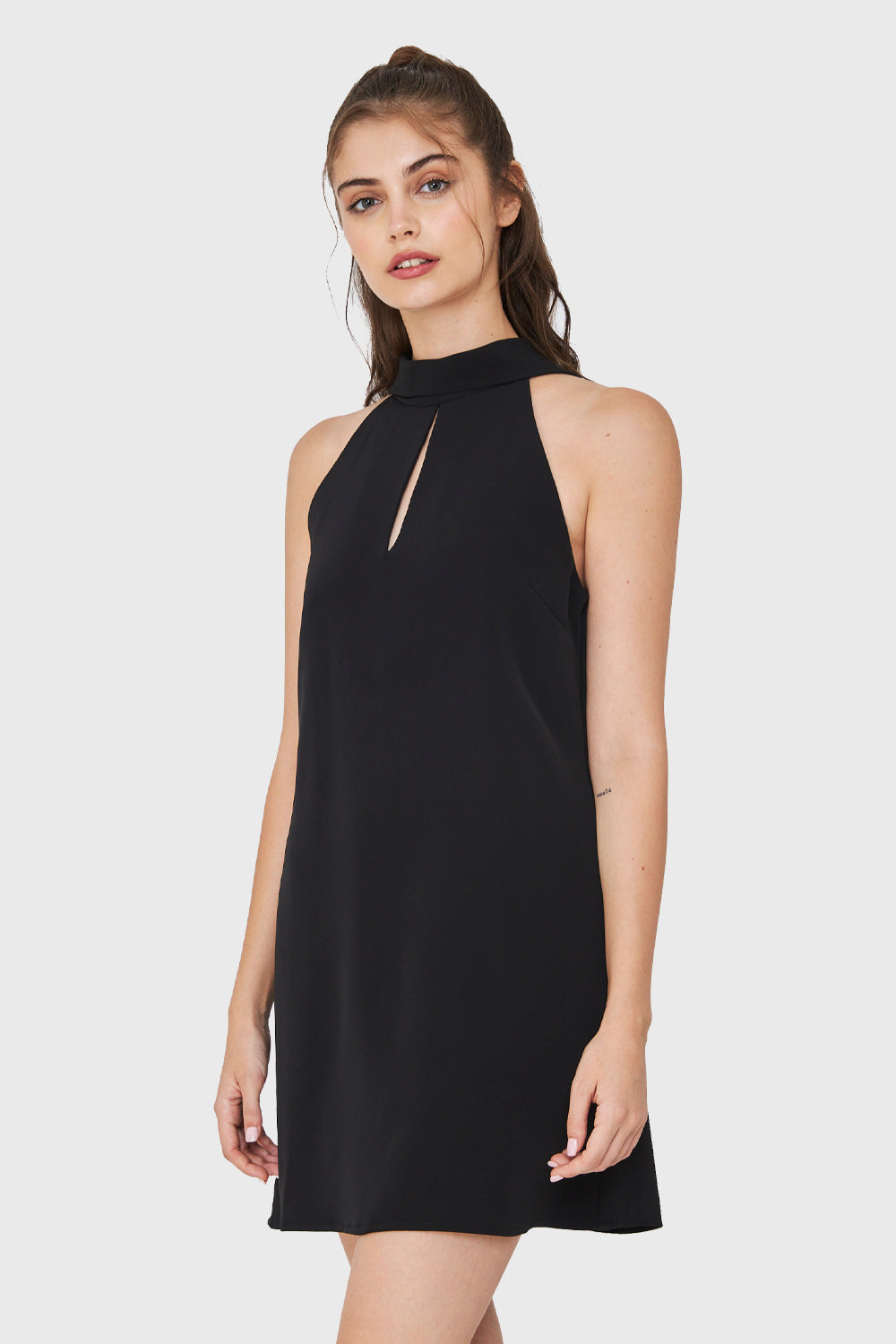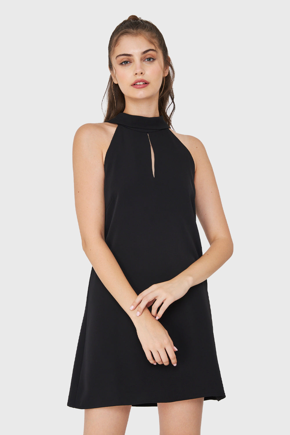 Características: Vestido corto halter con lazo decorativo. Cut out en busto. Cierre y botón de ajuste en espalda. Forrado.