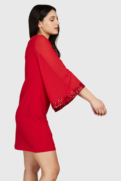 Vestido Manga Lentejuela Rojo