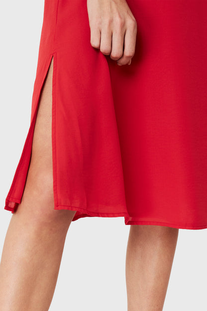 Características: Vestido midi escote en V. Tirantes estilo pabilo ajustable. Abertura por ambos costados. Presillas en cintura para lazo de ajuste. Cierre invisible por el costado. Posee forro.