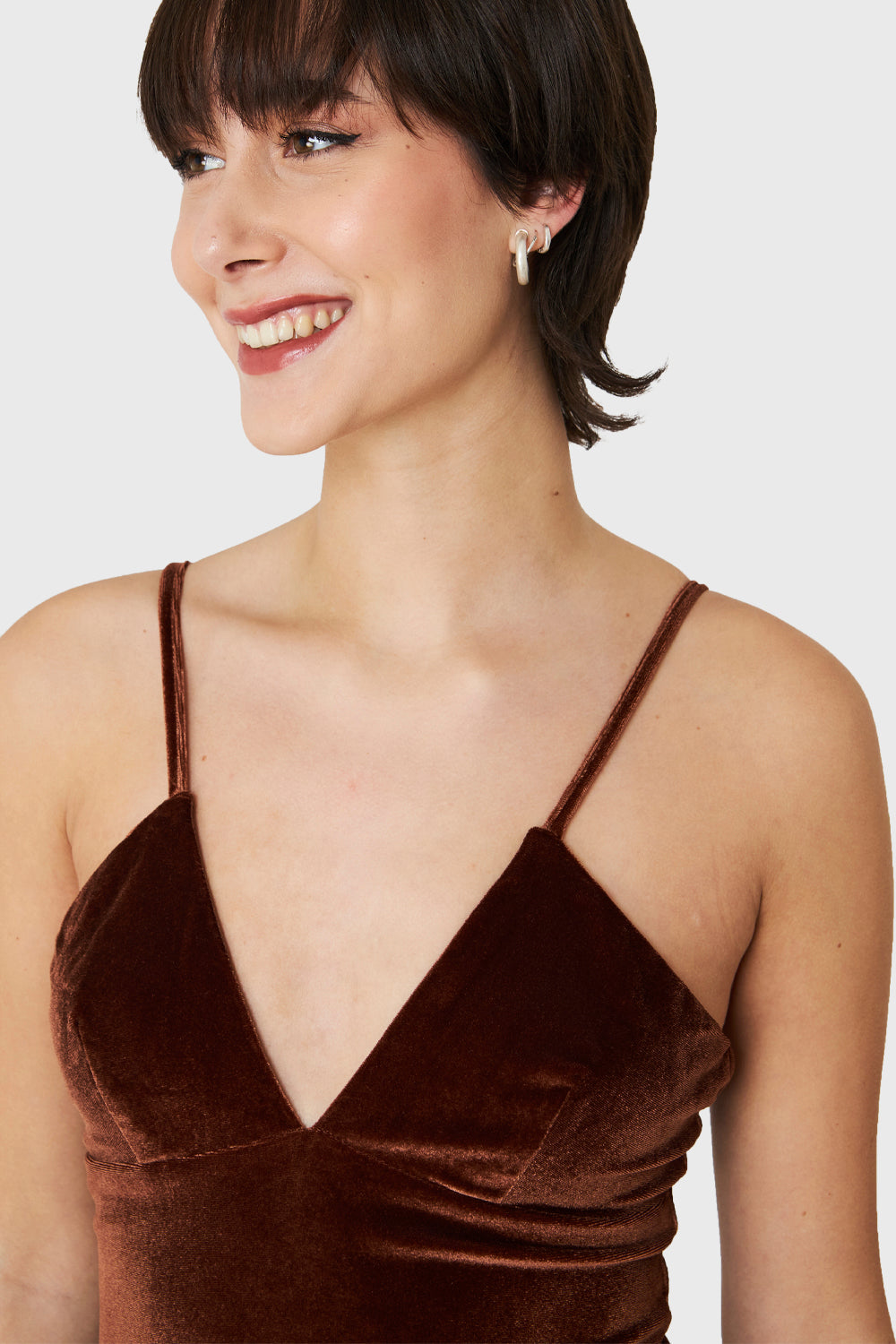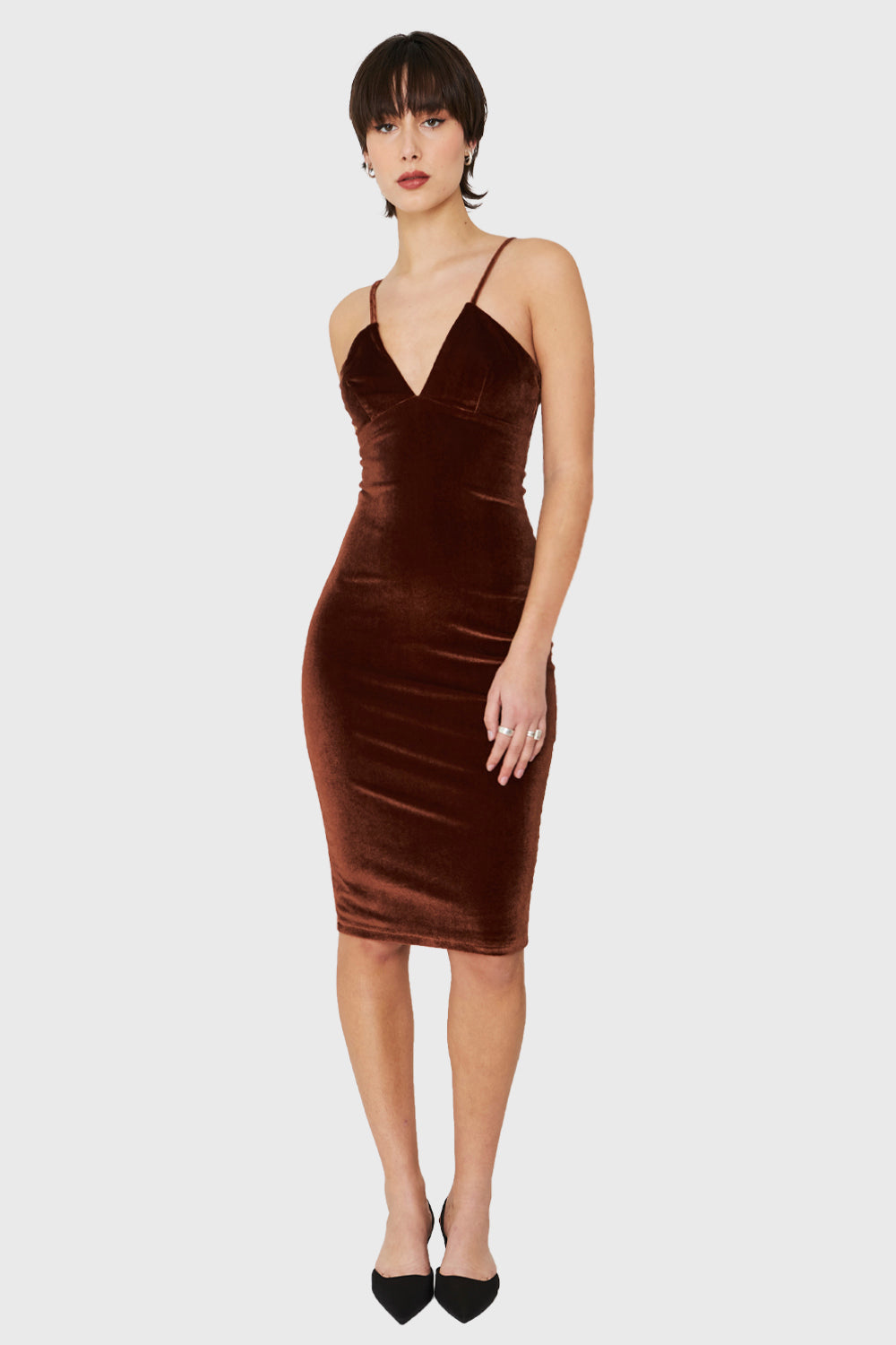 Características: Vestido plush midi con pabilo ajustable elasticado. Cierre en espalda. Posee forro.