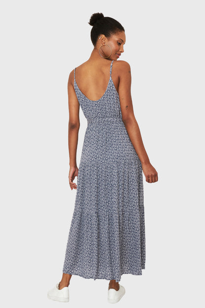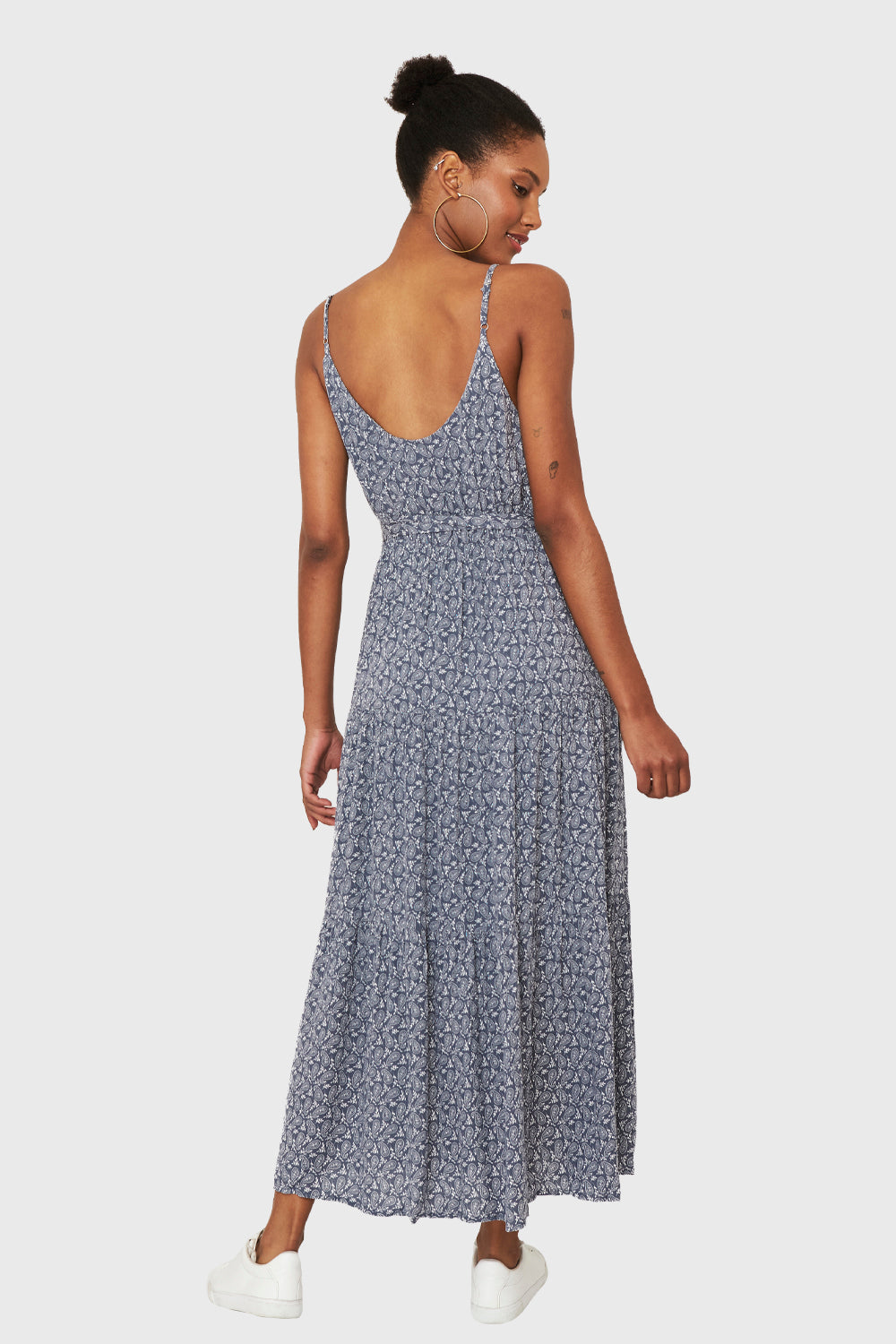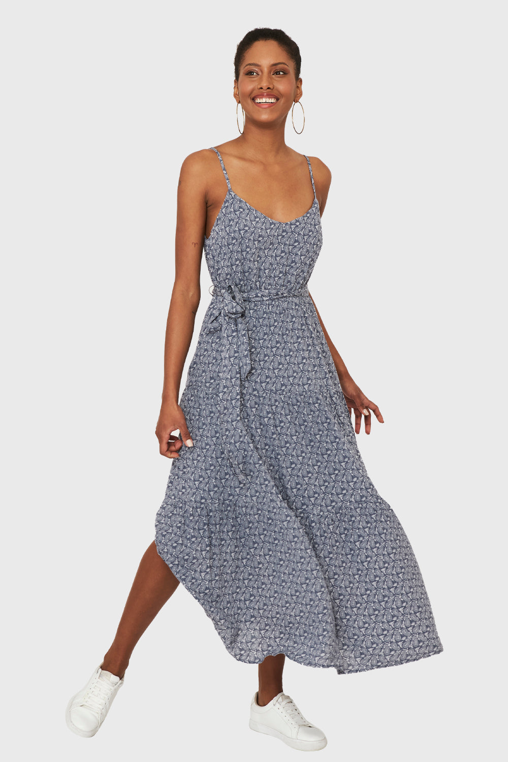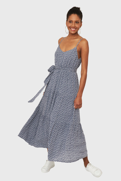 Características: Vestido largo con volante en faldón. Print paisley. Tirantes pabilo ajustables. Elástico en la cintura y lazo de ajuste. Posee forro. Sin cierre.