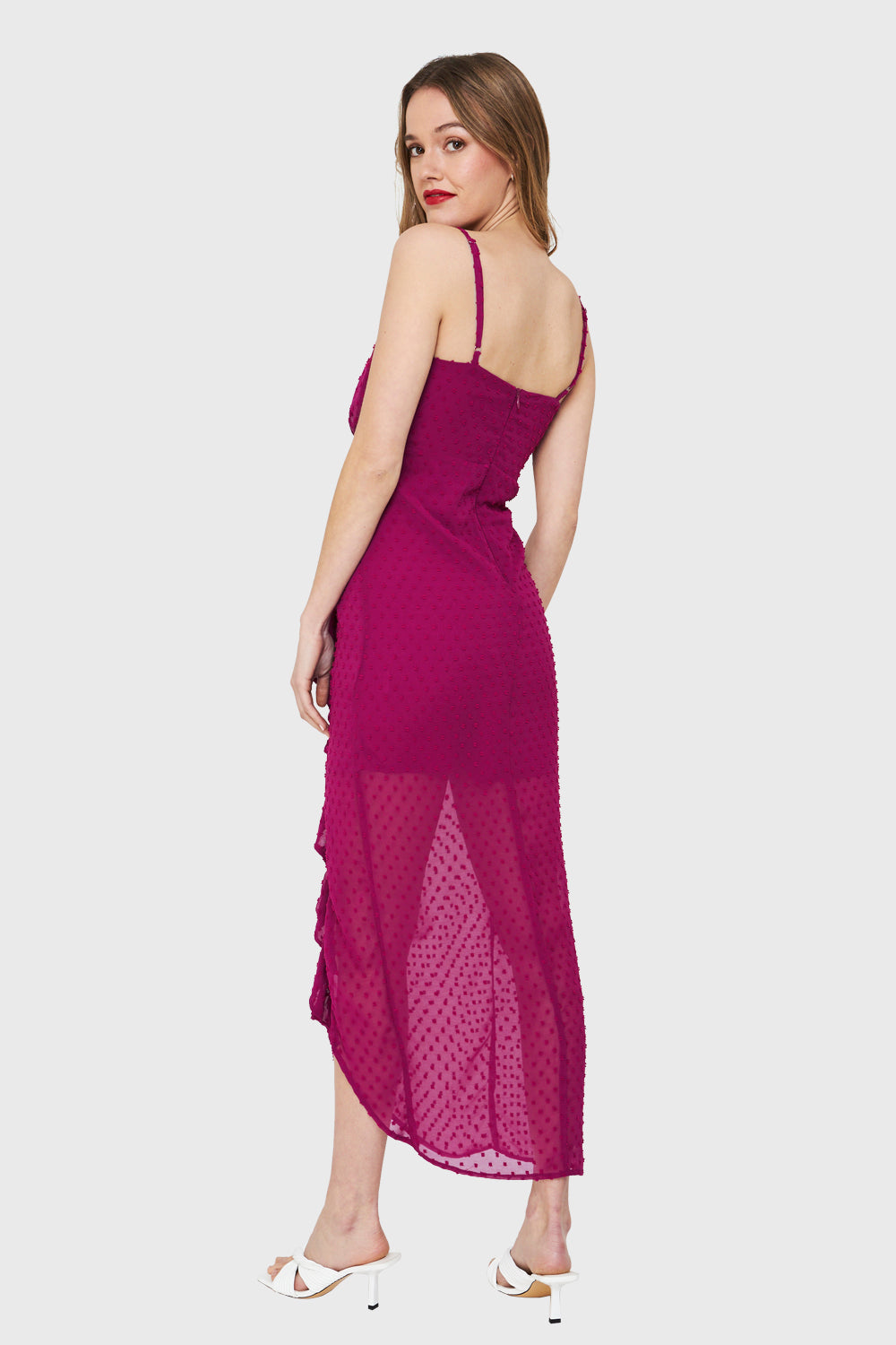Características: Vestido pabilo ajustable con tajo y vuelo frontal. Posee cierre invisible en espalda. Es forrado.