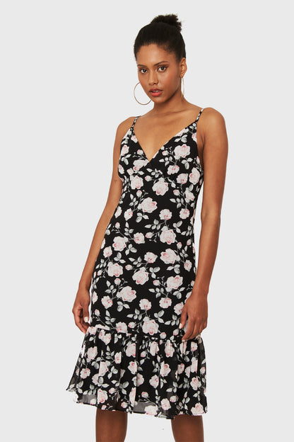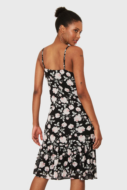 Vestido Volante Rosas Negro